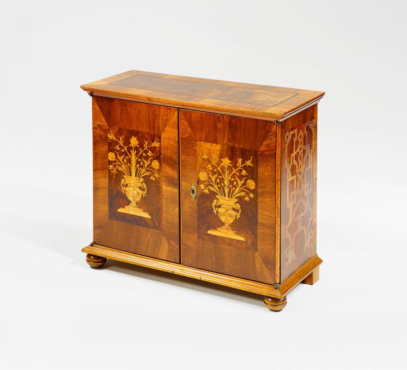 Technik: Nussbaum, Ahorn u.a. Hölzer poliert und eingelegt.