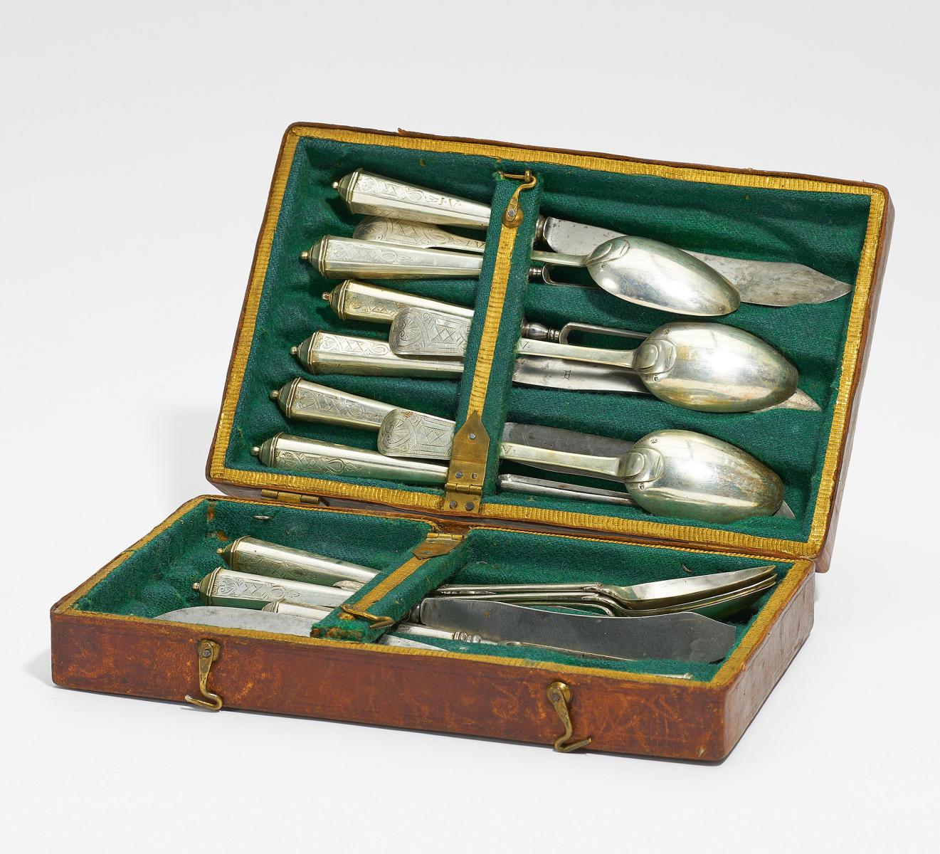 Technik: Silber. Messer u. Gabeln mit Eisen.