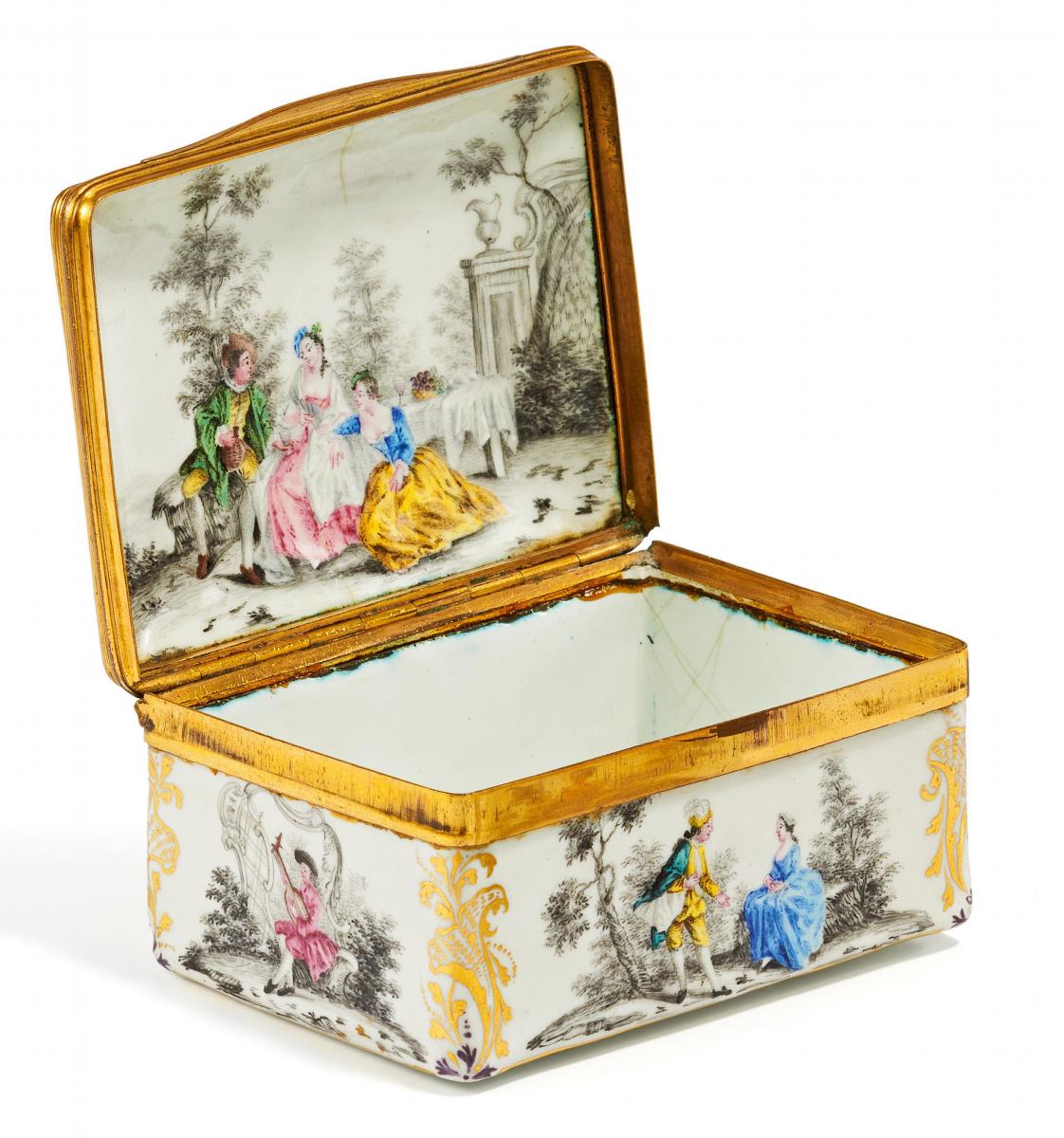 Technik: Farbiges Email- und Golddekor. Vergoldete Metallmontierung.
