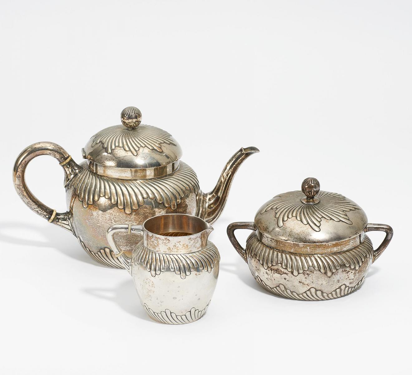 TEEKANNE, ZUCKERDOSE UND MILCHKÄNNCHEN ZUNGENDEKOR.