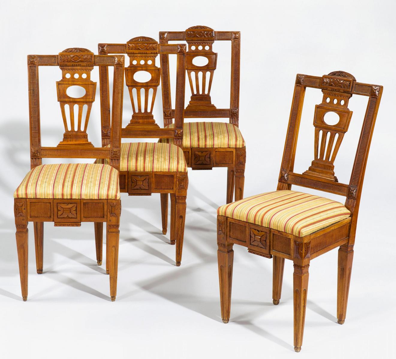 Technik: Nussbaum geschnitzt. Gepolstert.