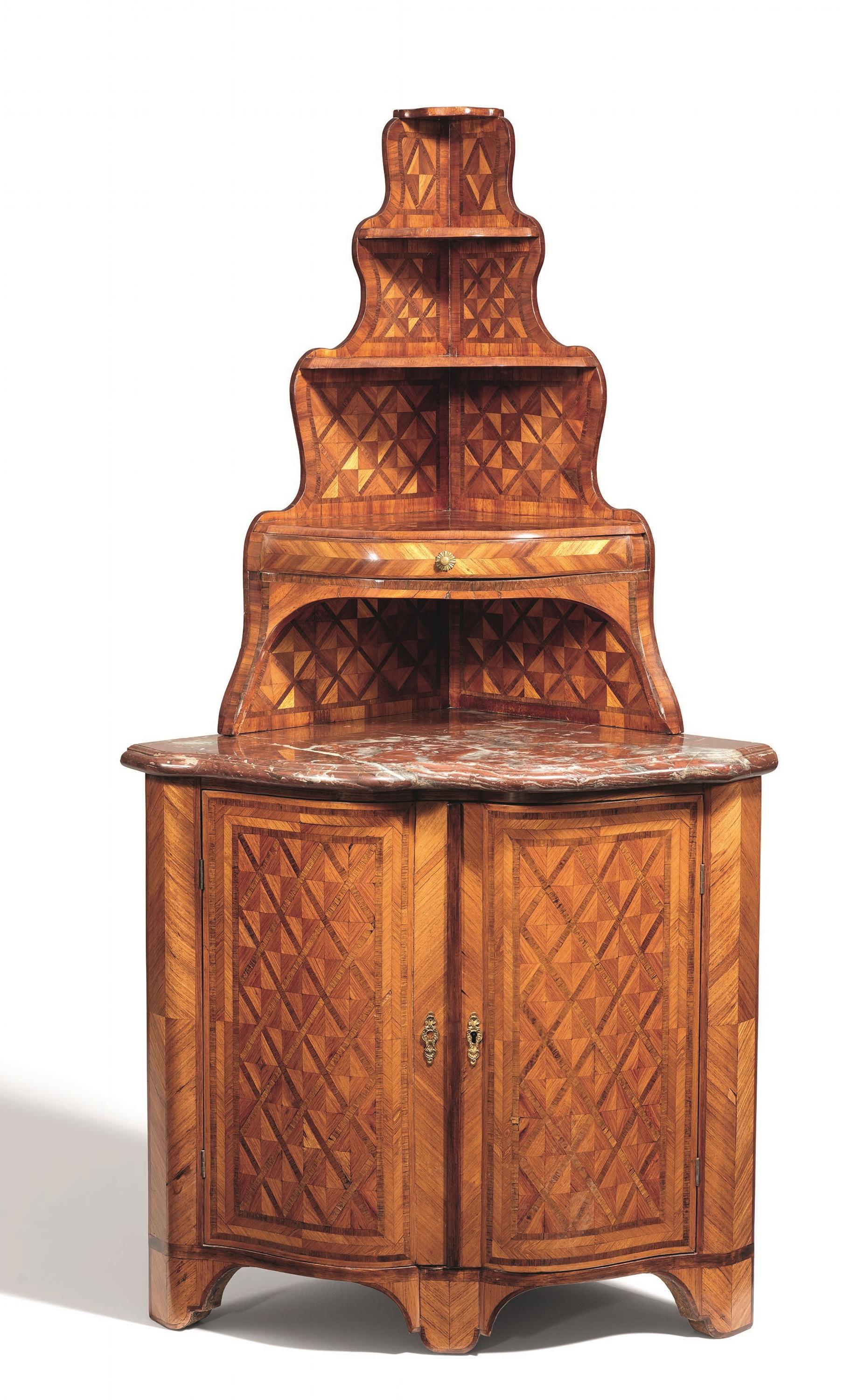 ECKSCHRANK MIT ETAGERENAUFSATZ.
