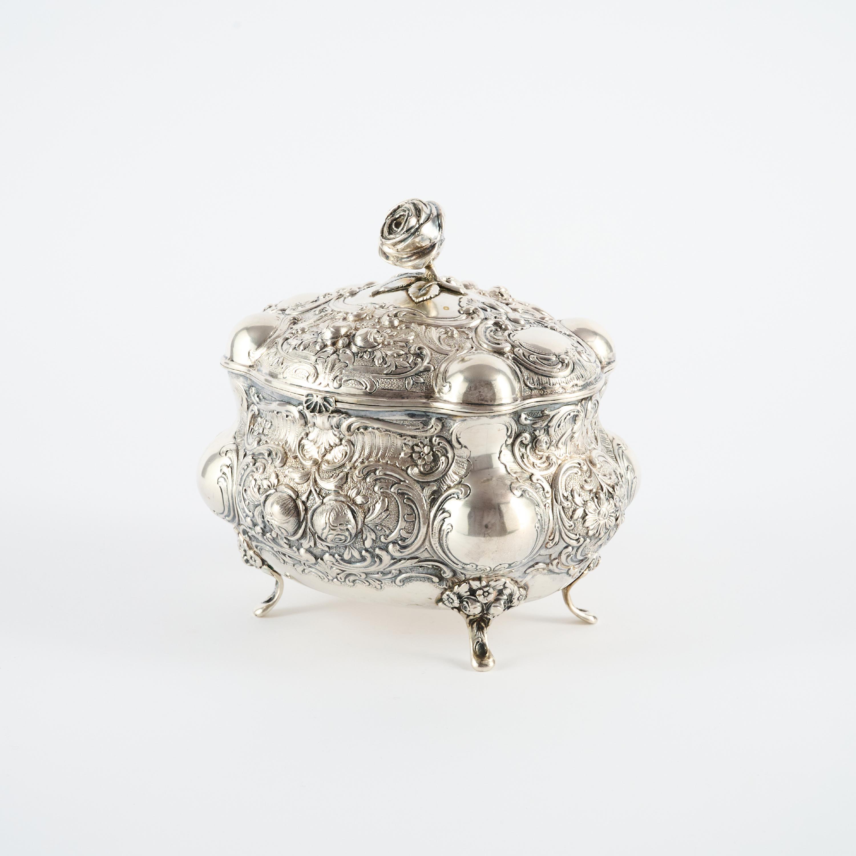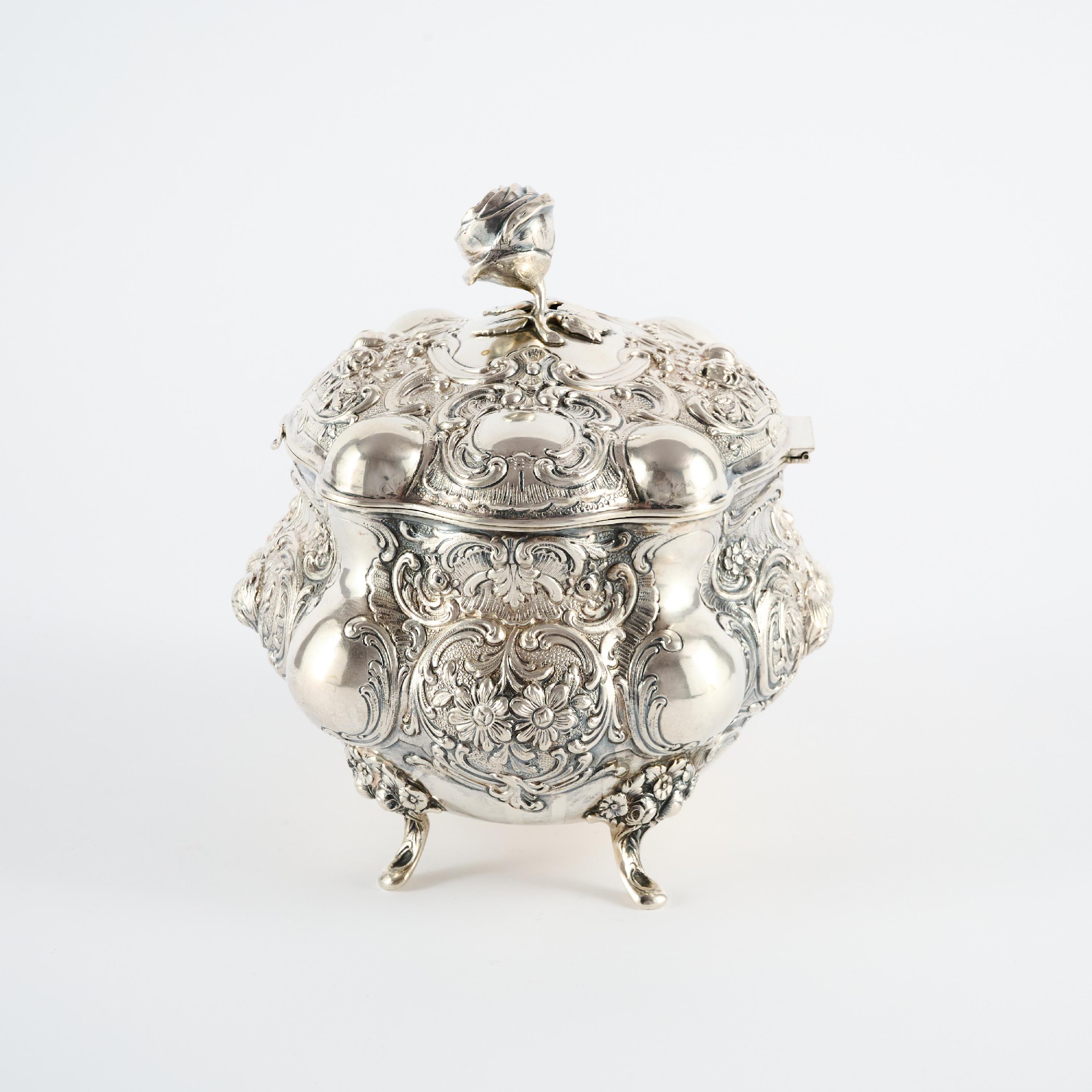 GROßE GEBÄCKDOSE STIL ROKOKO MIT ROSENKNAUF.