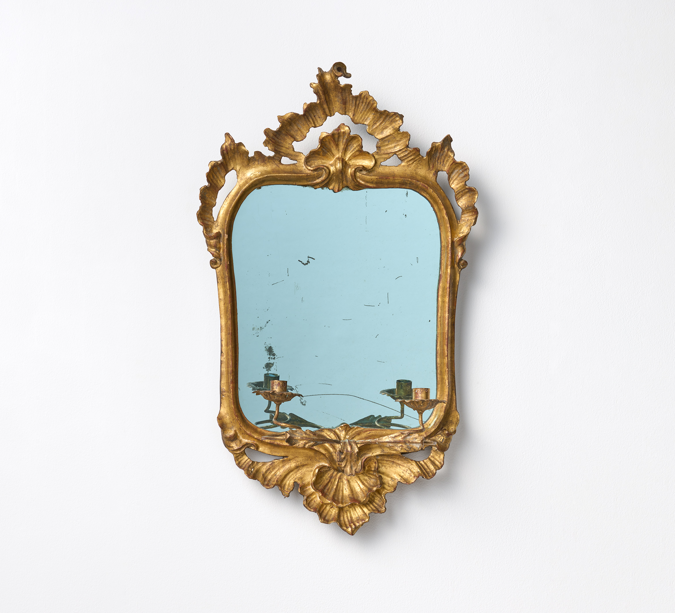 KLEINER SPIEGEL MIT LEUCHTERARMEN.