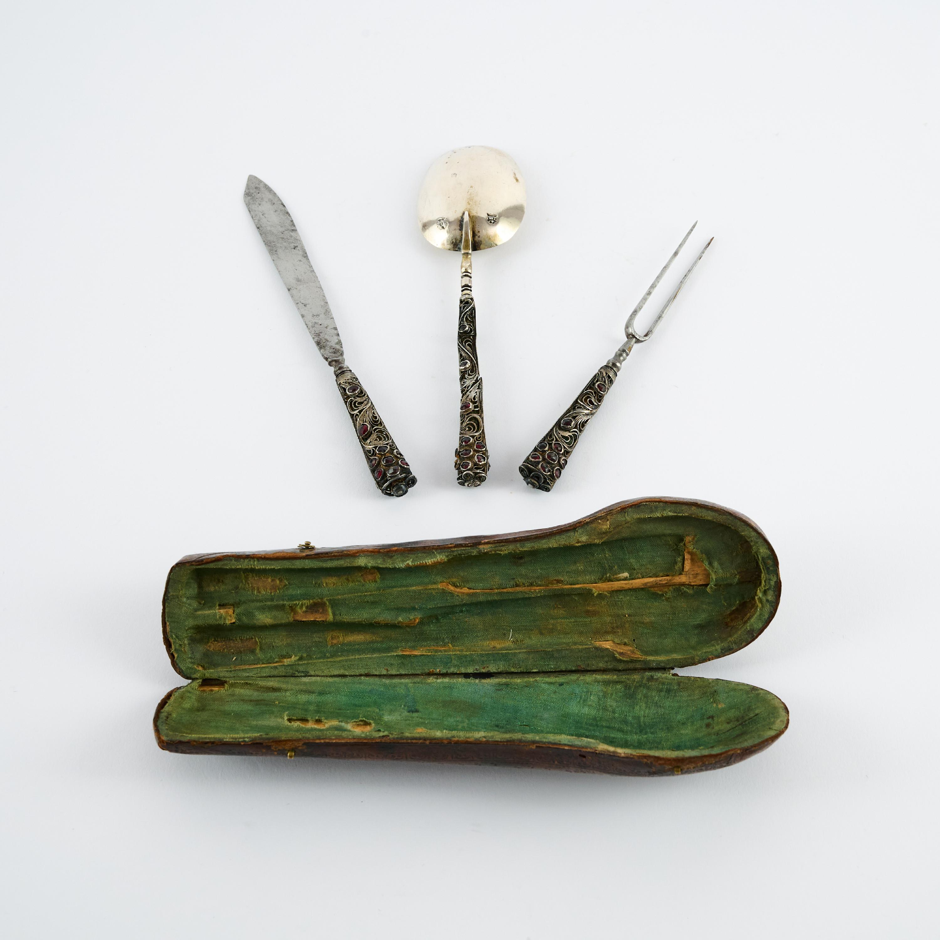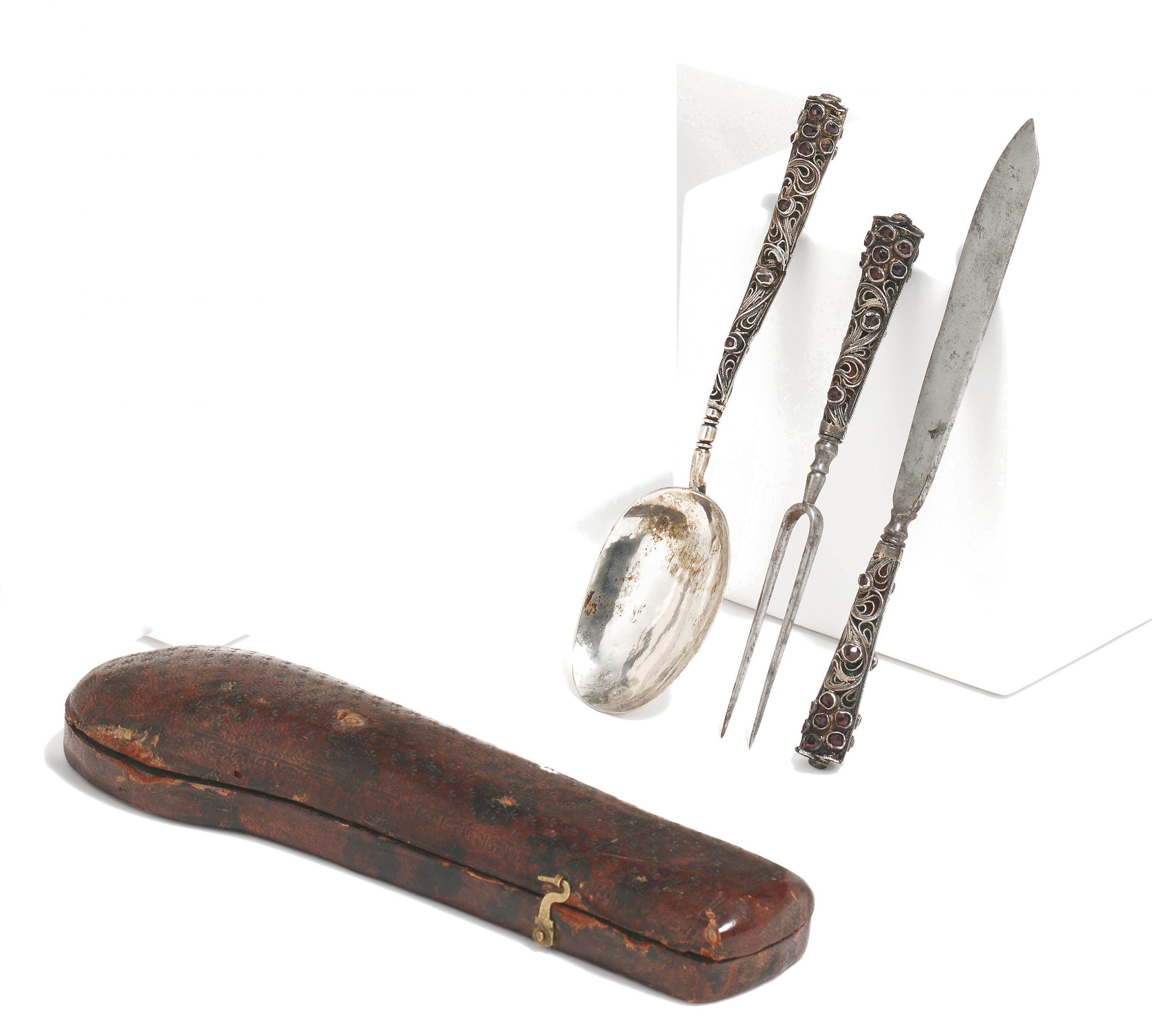 Beschreibung: Bestehend aus einem Messer, Löffel und zweizinkiger Gabel.