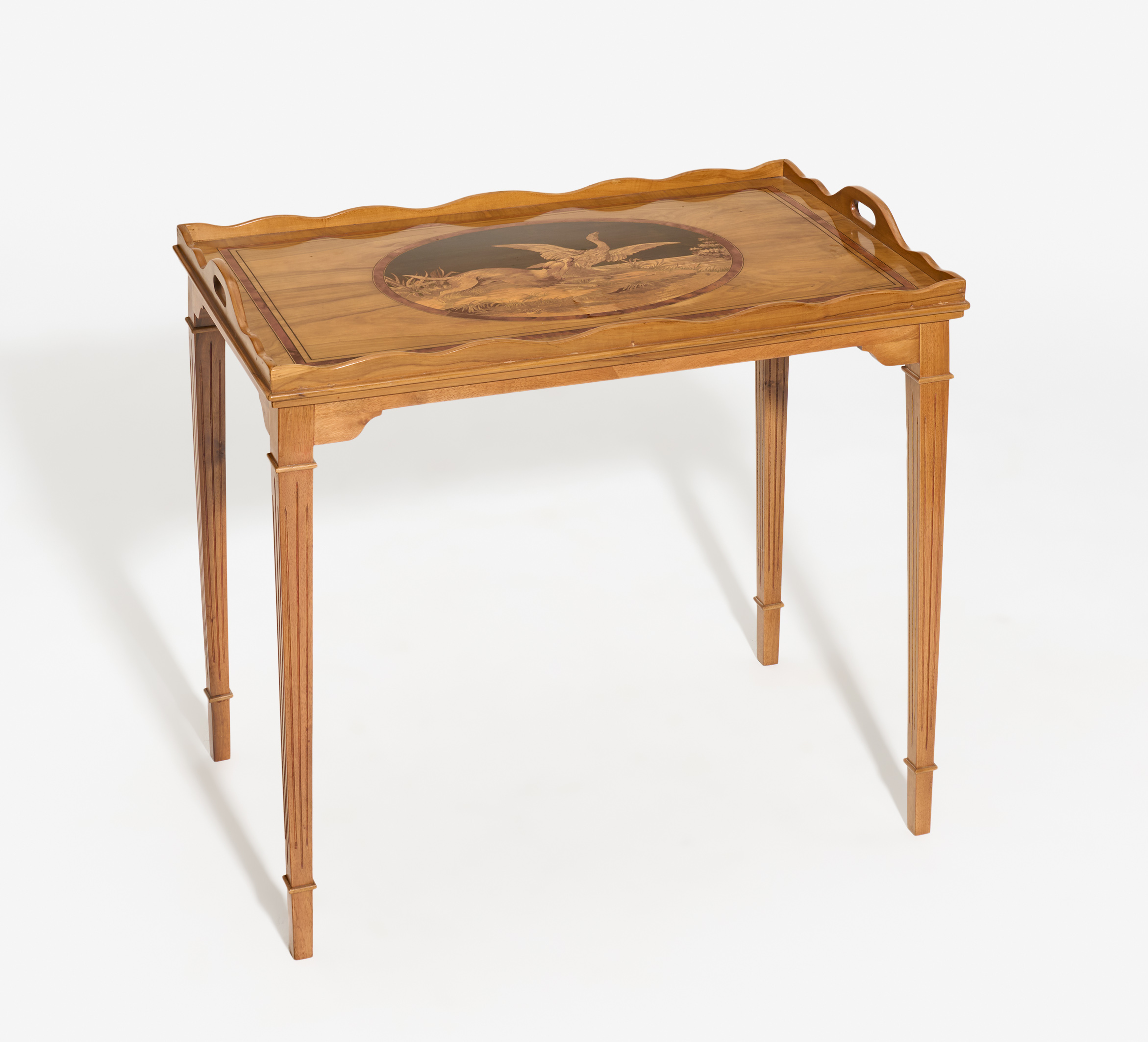 TABLETT-TISCH MIT JAGDLICHEM MOTIV.