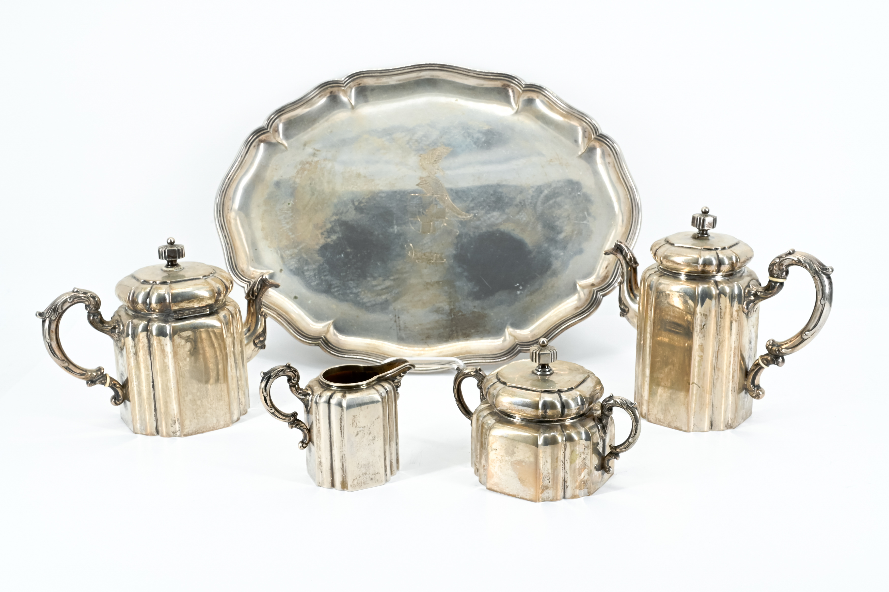 VIERTEILIGES KAFFEE- UND TEESERVICE UND TABLETT.