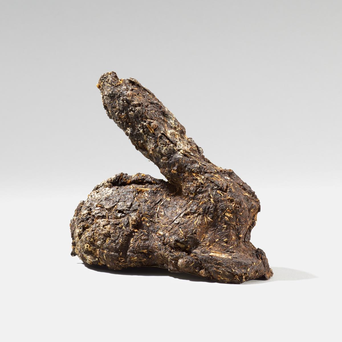 Karnickelköttelkarnickel. 1975. Multiple. Kaninchenstroh, Kaninchenköttel etc. in Hasenform gepresst. 17,0 x 19,5 x