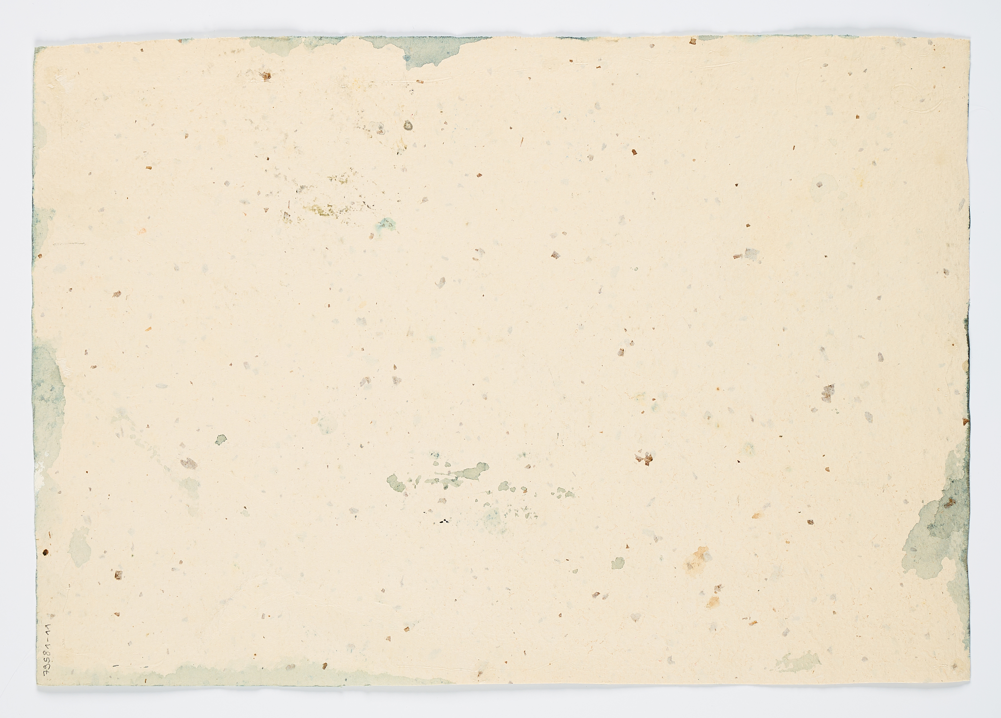 Herstellungsbedingt minimal gewellt. Minimale Knickspuren in den oberen beiden Ecken. Leichte Knickspuren im unteren rechten Eckbereich. Verso Spuren alter Montierung sowie Arbeitsspuren und minimale Verschmutzungen. Ansonsten guter Zustand.