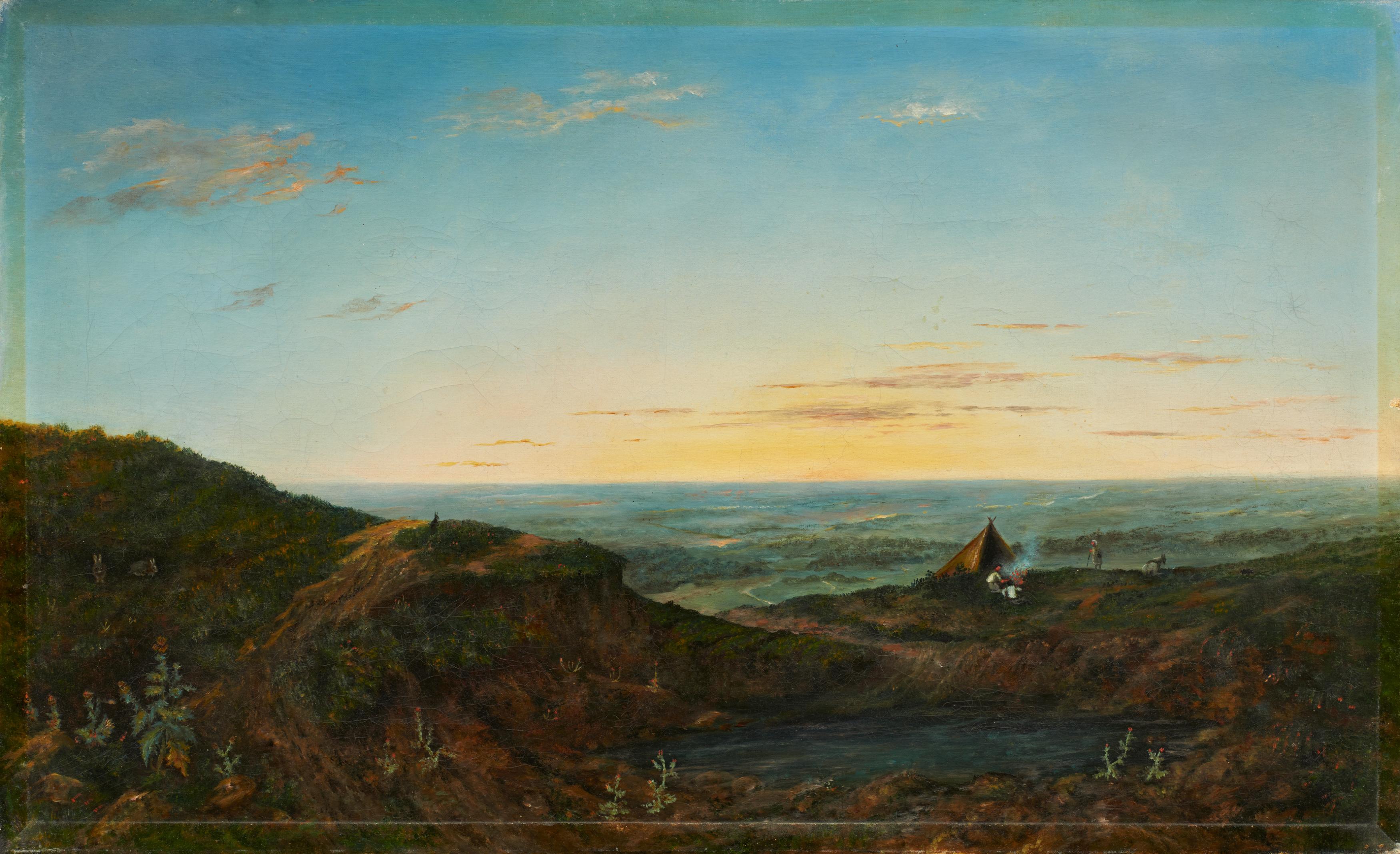 Titel: Hirten im Abendlager über weiter Landschaft.