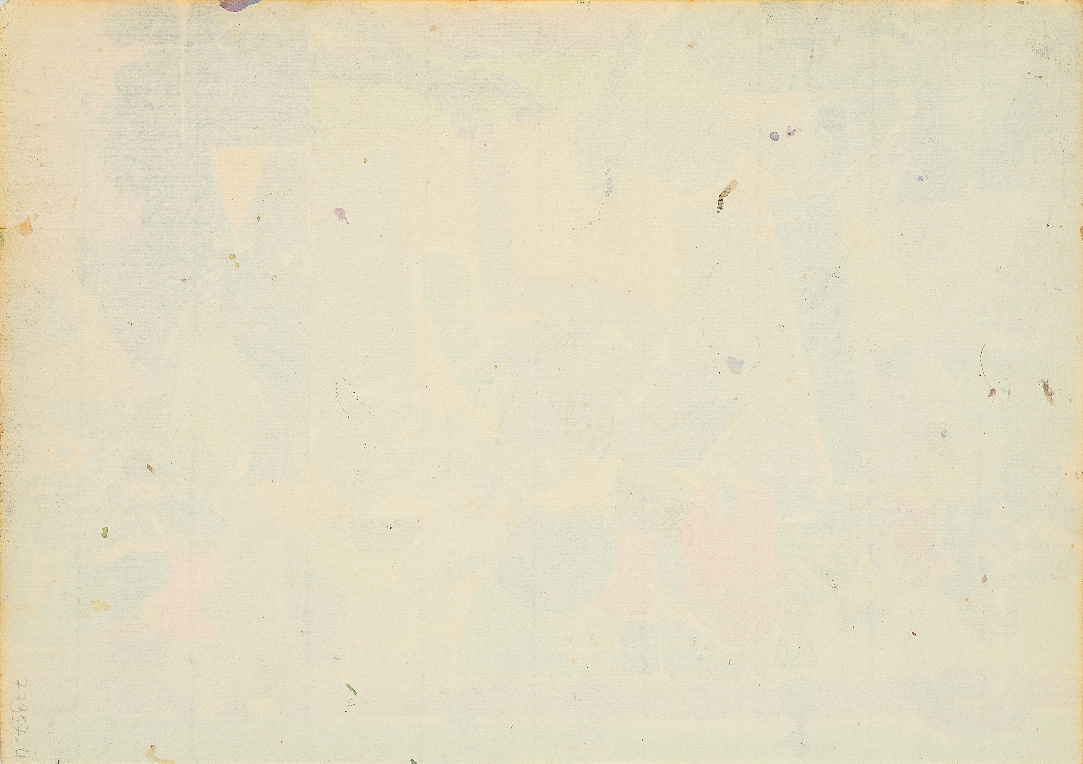 Herstellungsbedingt minimal gewellt. Minimal gebräunt. Leichte Bestoßung der unteren linken Ecke. Minimale Griffspuren. Verso minimal gebräunt an den Kanten sowie Arbeitsspuren. Ansonsten guter Zustand.