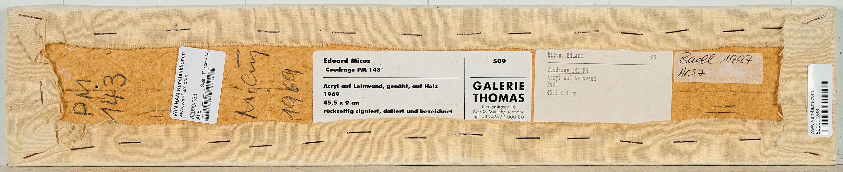 Bezeichnung: Bezeichnet, signiert und datiert verso: PM 143 Micus 1969.