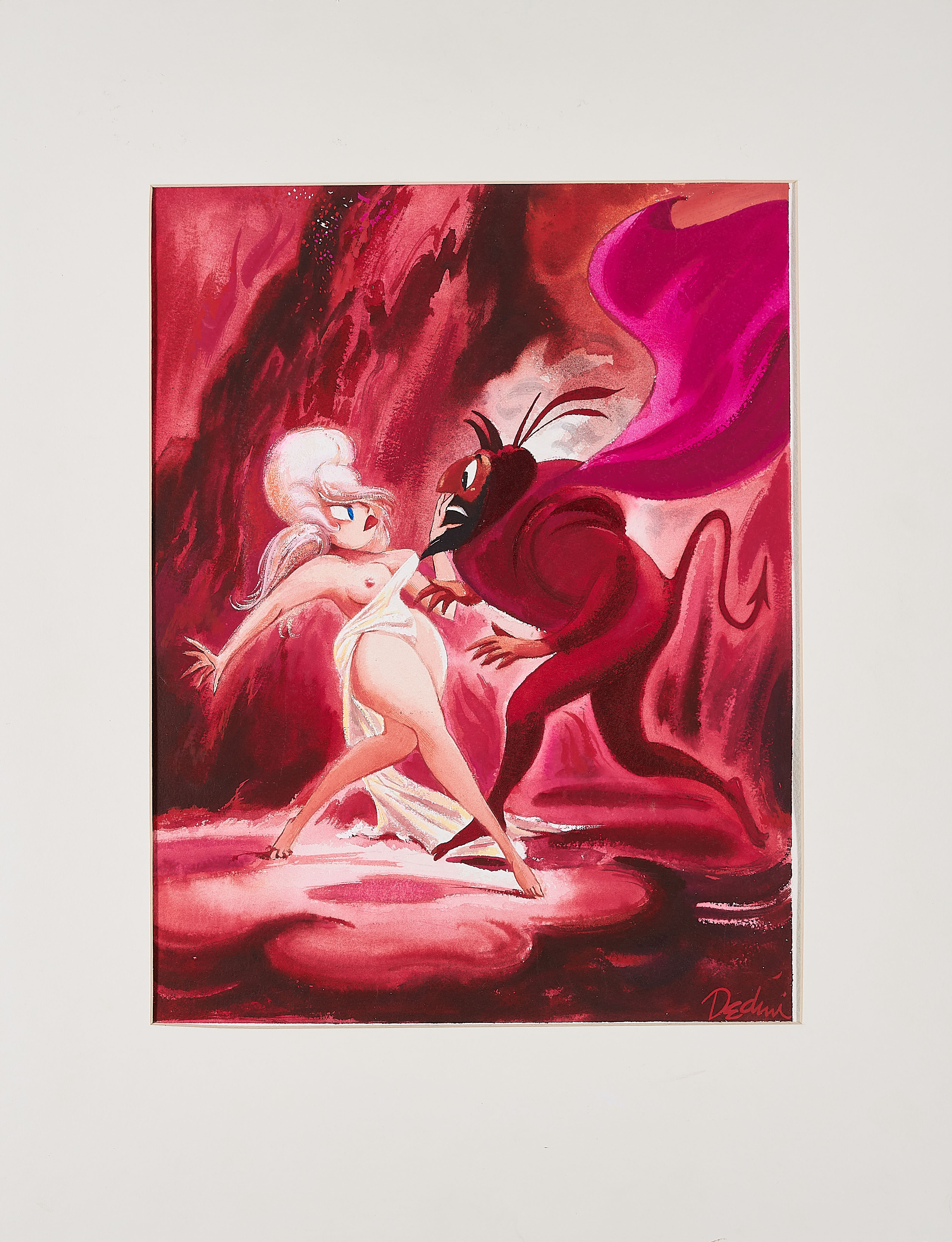 Cartoon für den frühen amerikanischen Playboy, erschienen im November 1963, S. 115. Blatt mit Copyright-Stempel des Herausgebers. Auf Malkarton des Herausgebers montiert, hier weitere Stempel und Bezeichnungen.
