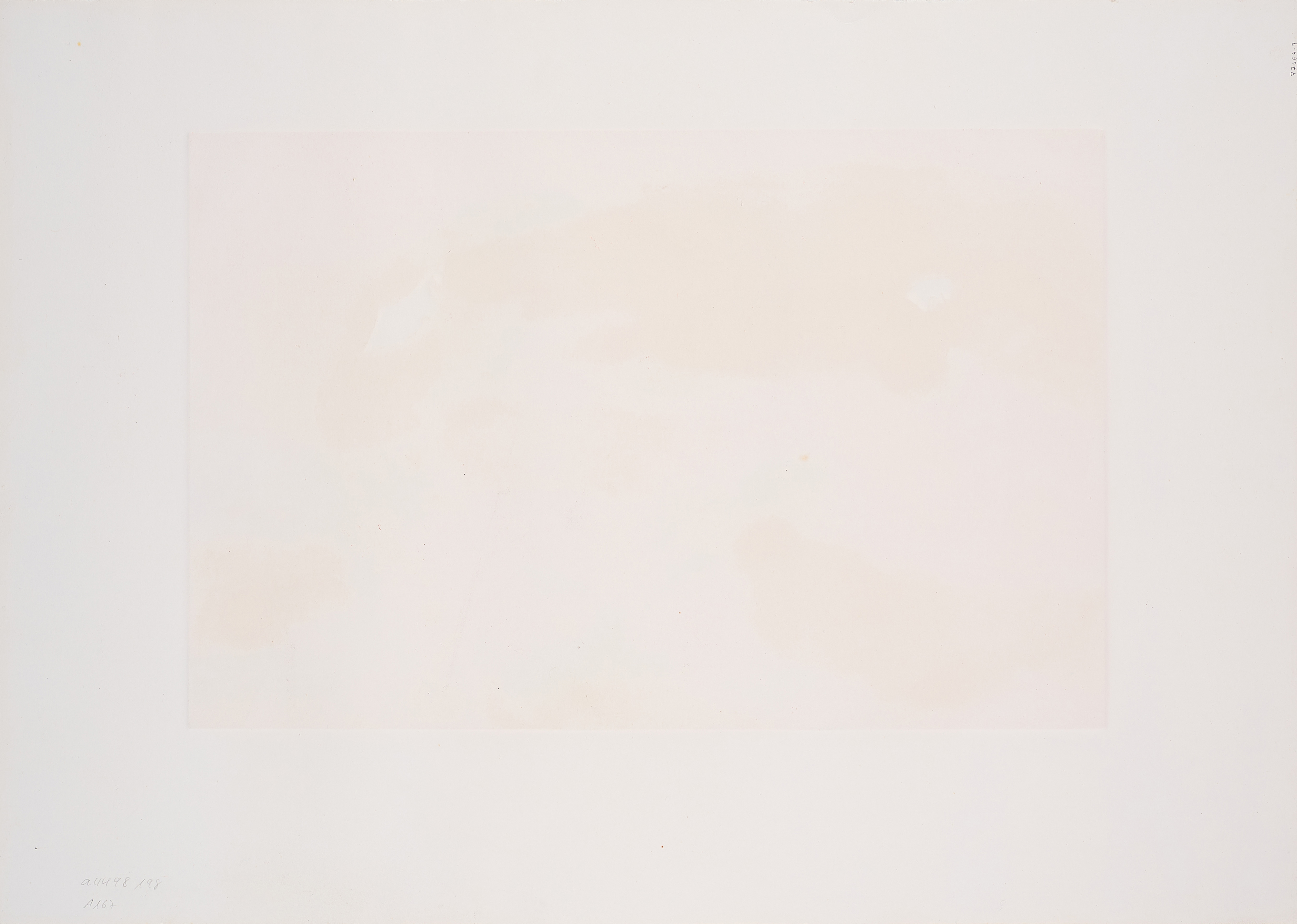 Herstellungsbedingt leicht gewellt. Minimal gebräunt in den Randbereichen. Minimale Verschmutzungen in der unteren rechten Bildecke. Leichte Knickspur am oberen Rand, links der Mitte. Vereinzelt minimale Bestoßungen der Kanten. Verso minimal gebräunt sowie minimale Verschmutzungen sowie vereinzelt minimale Stockflecken. Ansonsten guter Zustand.