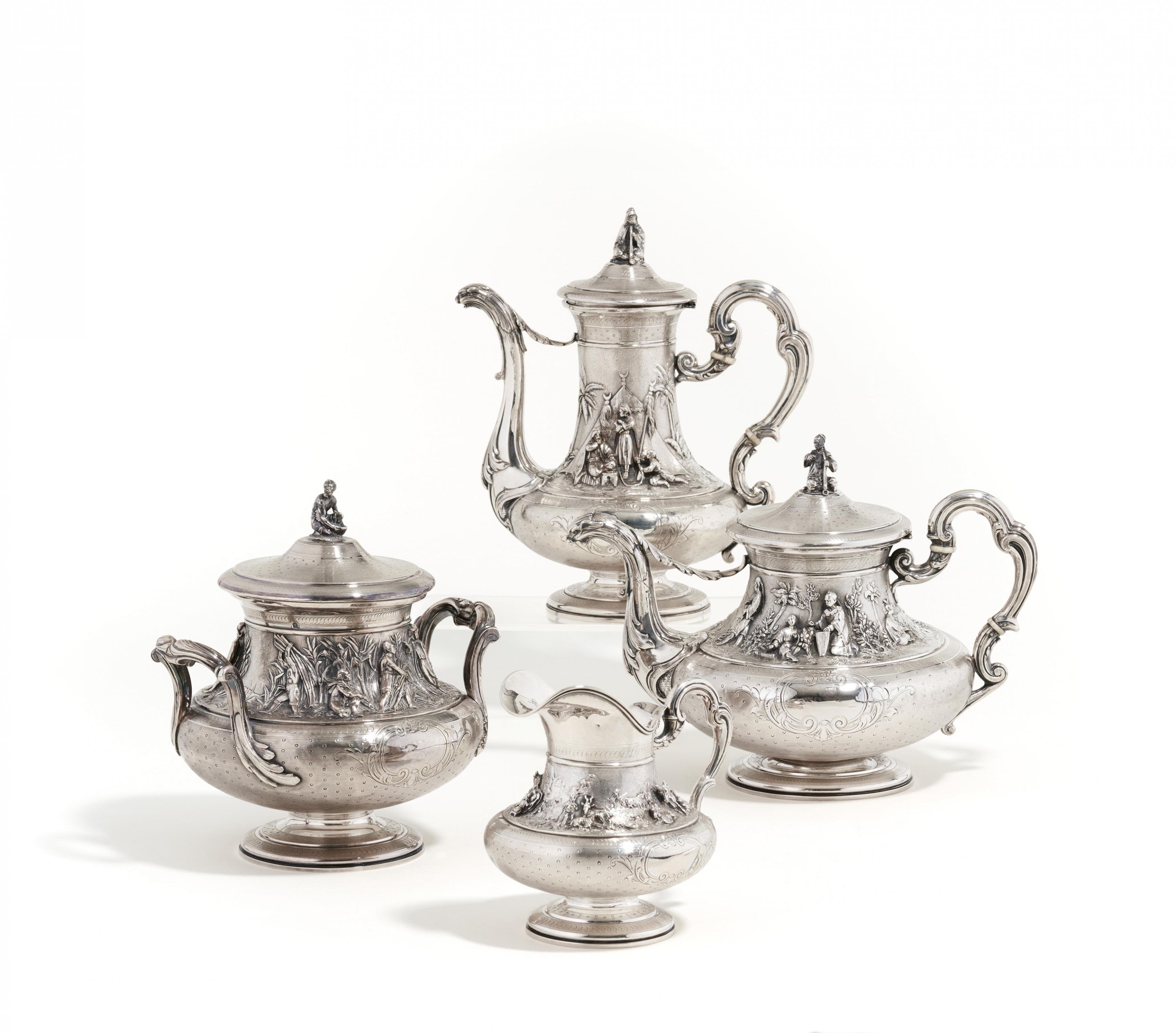 VIERTEILIGES SERVICE MIT REICHEN FIGÜRLICHEN SZENEN.
