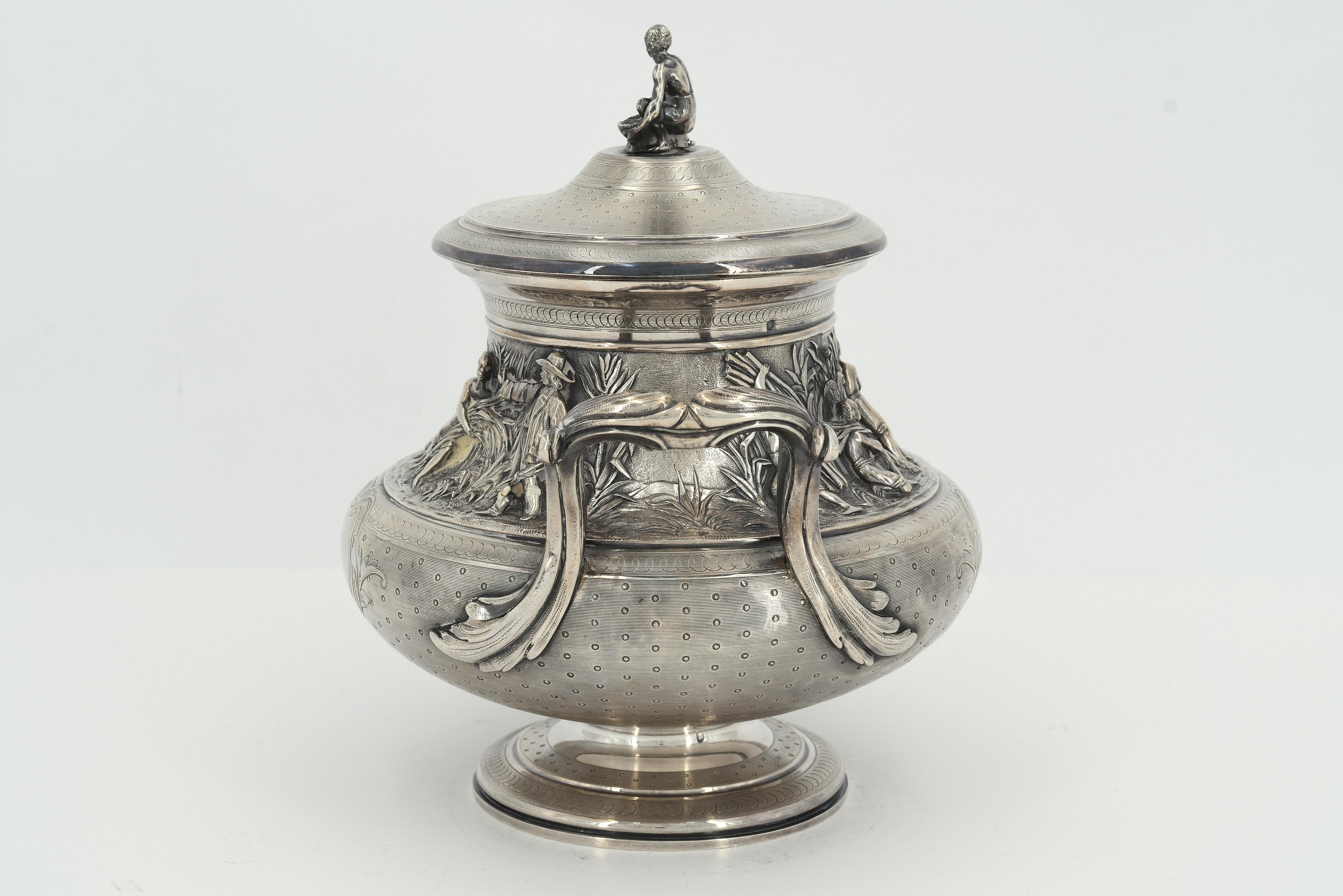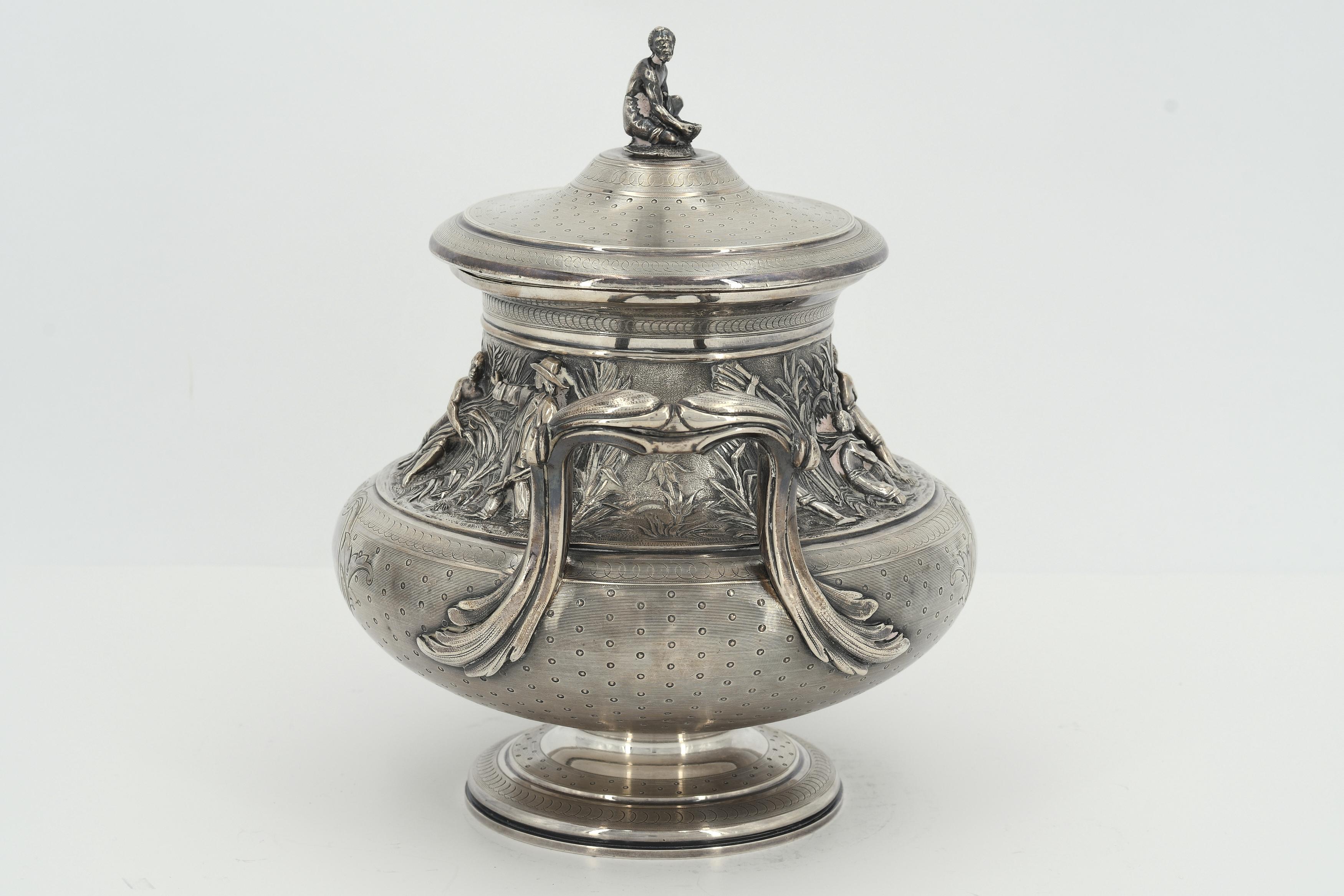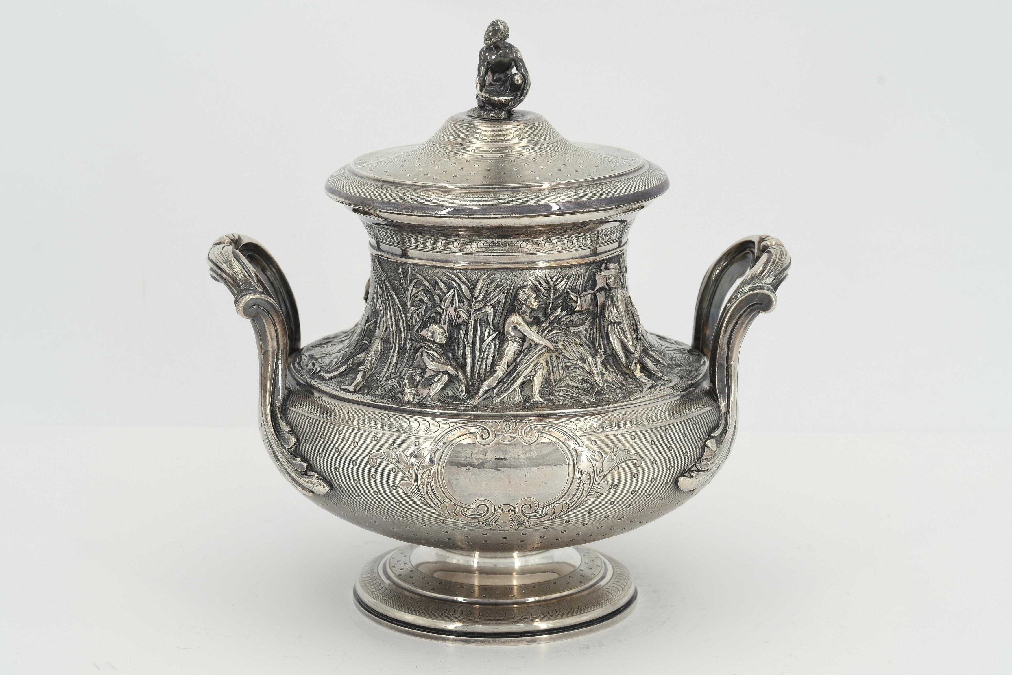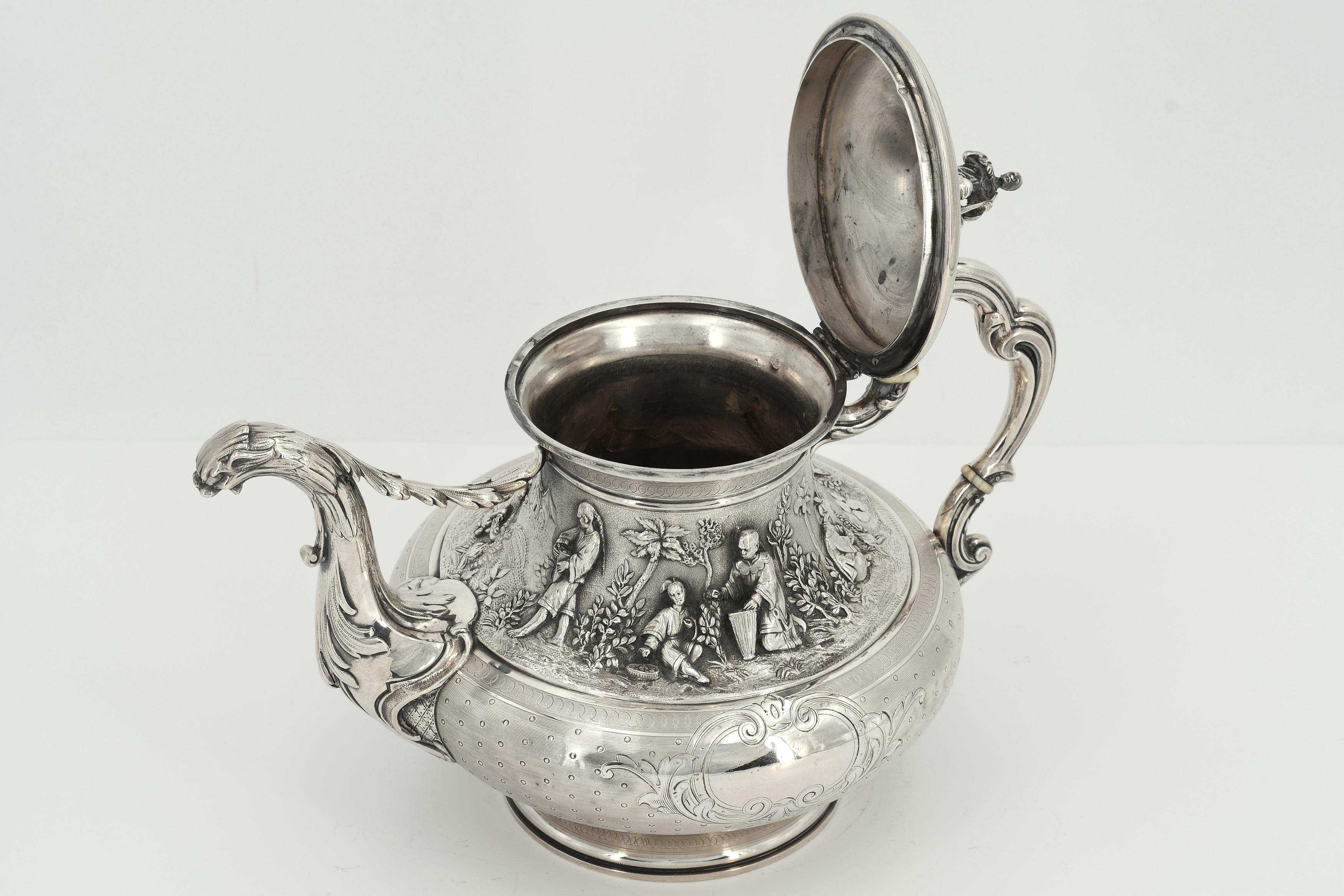 einer Teekanne mit figürlichen Szenen des Teeanbaus in China, einer großen Zuckerdose mit