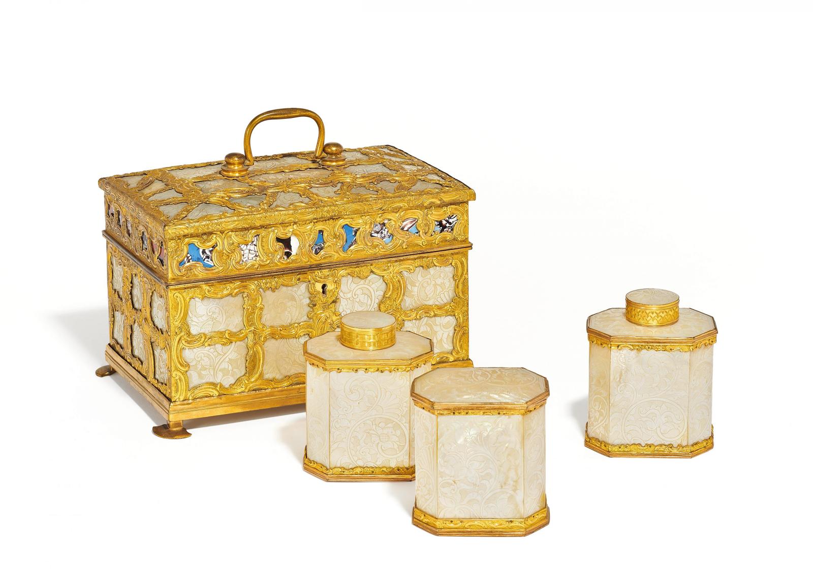 PRUNKVOLLE TEESCHATULLE MIT EINSÄTZEN.