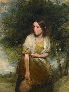 Mädchen mit Krug. Öl auf Leinwand. 111,5 x 88cm. Unleserliche Restsignatur unten rechts: Rahmen.