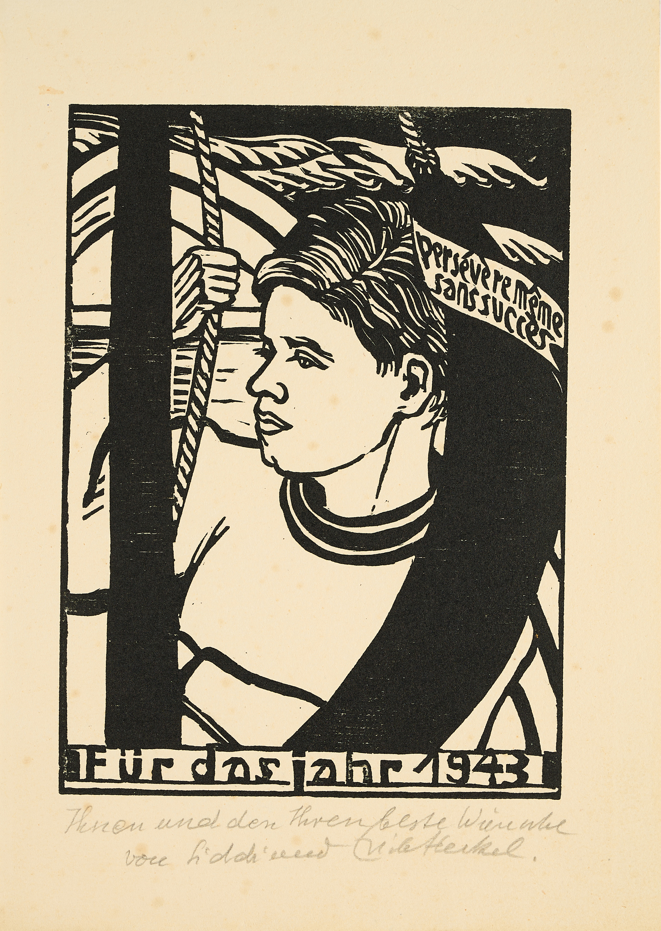 Technik: Holzschnitt auf Bütten.