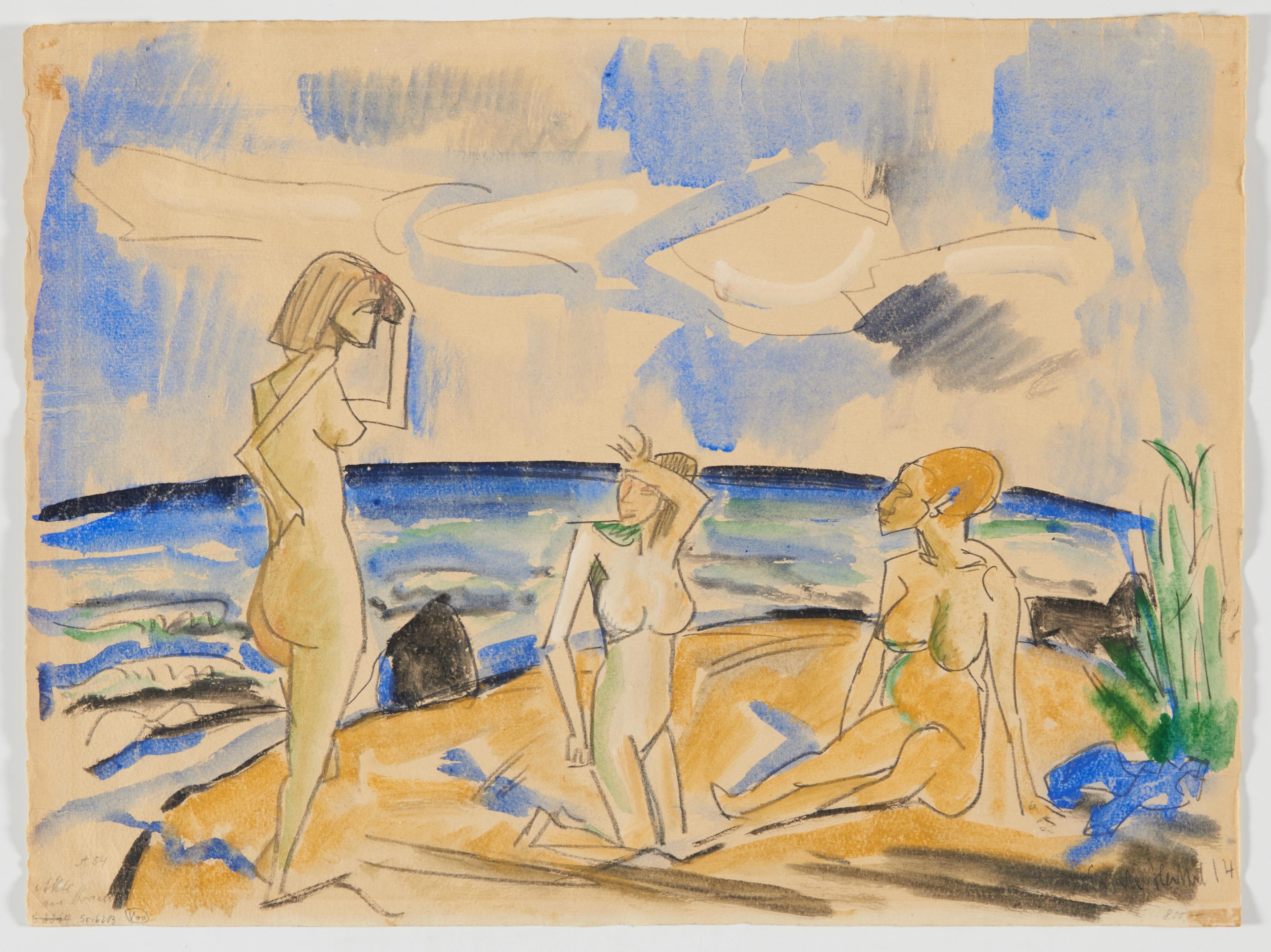 Bezeichnung: Signiert und datiert unten rechts: Erich Heckel 14. Bezeichnet und betitelt unten links: A 54 Akte am Strand.