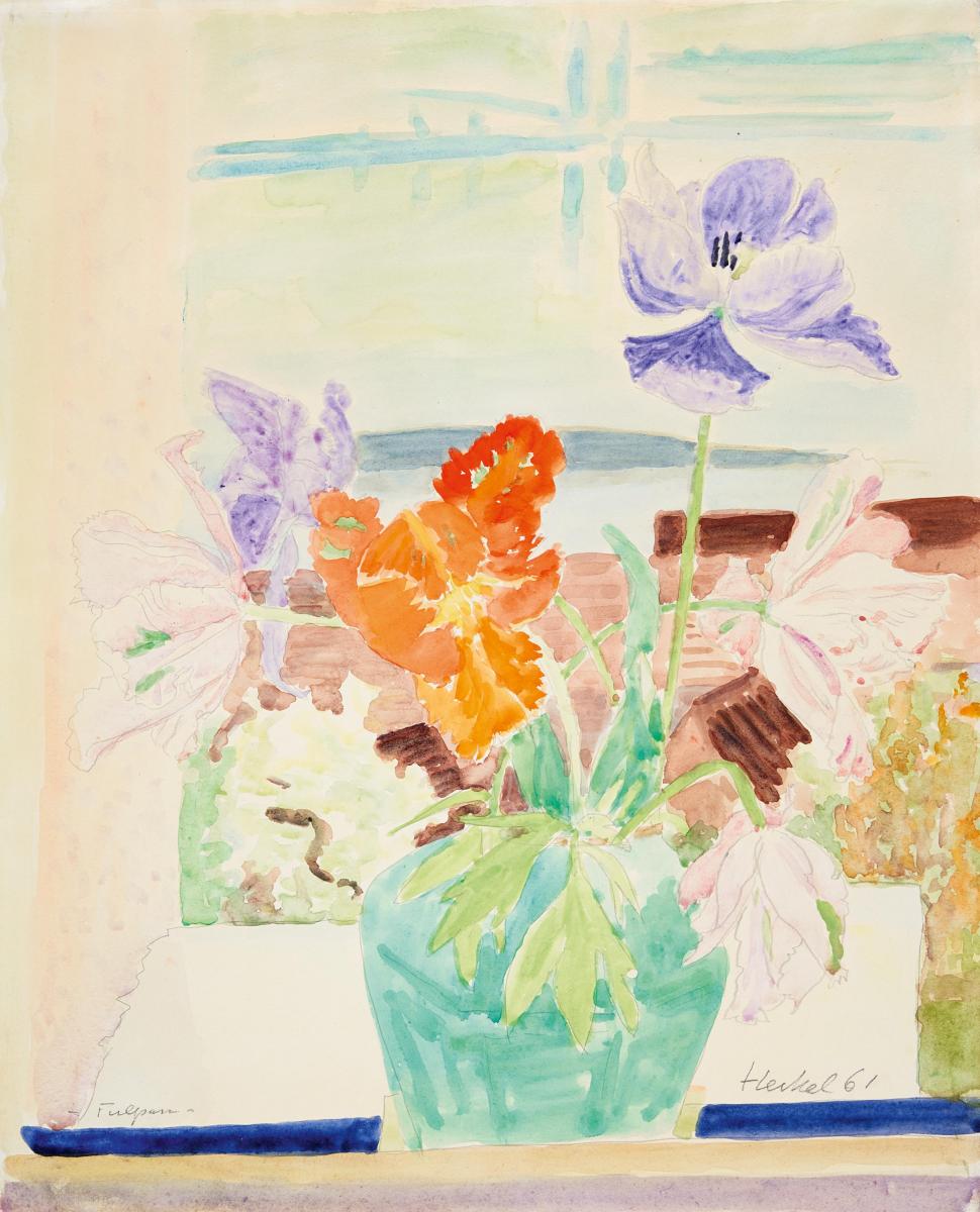 Bezeichnung: Signiert und datiert unten rechts: Heckel 61. Betitelt unten links: Tulpen.