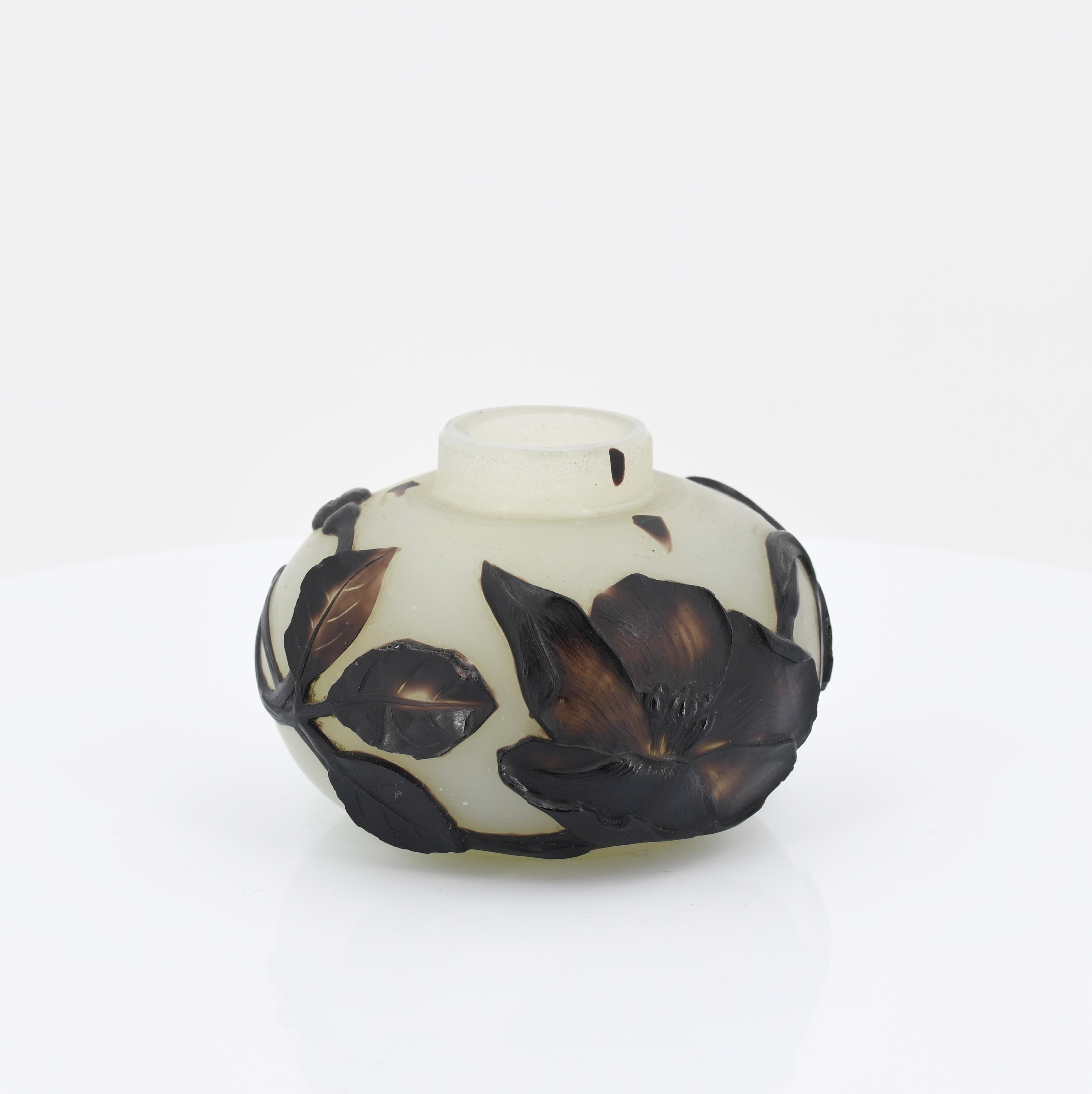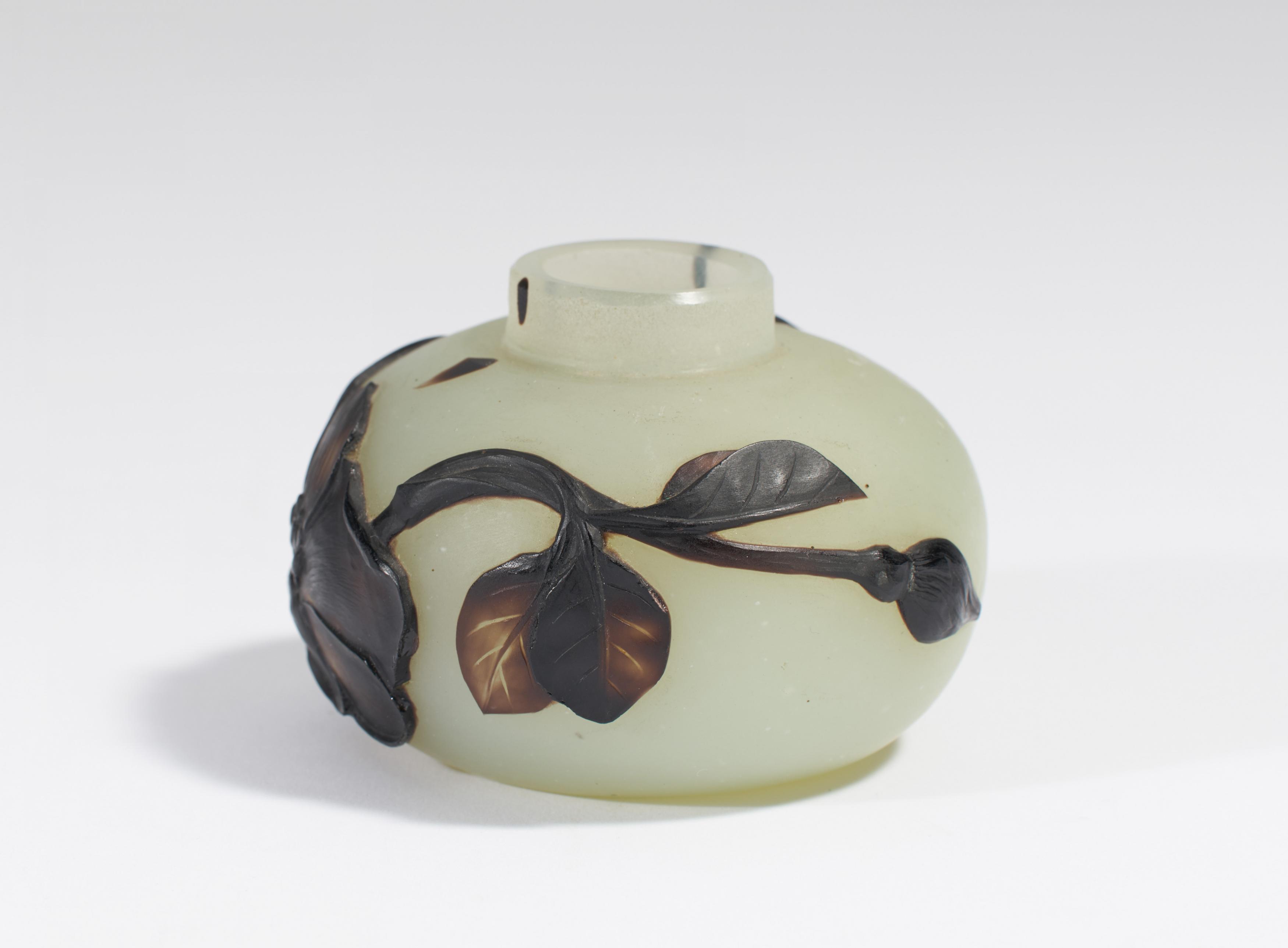 Material: Farbloses Glas, milchig hinterfangen. Überfang in Braun.