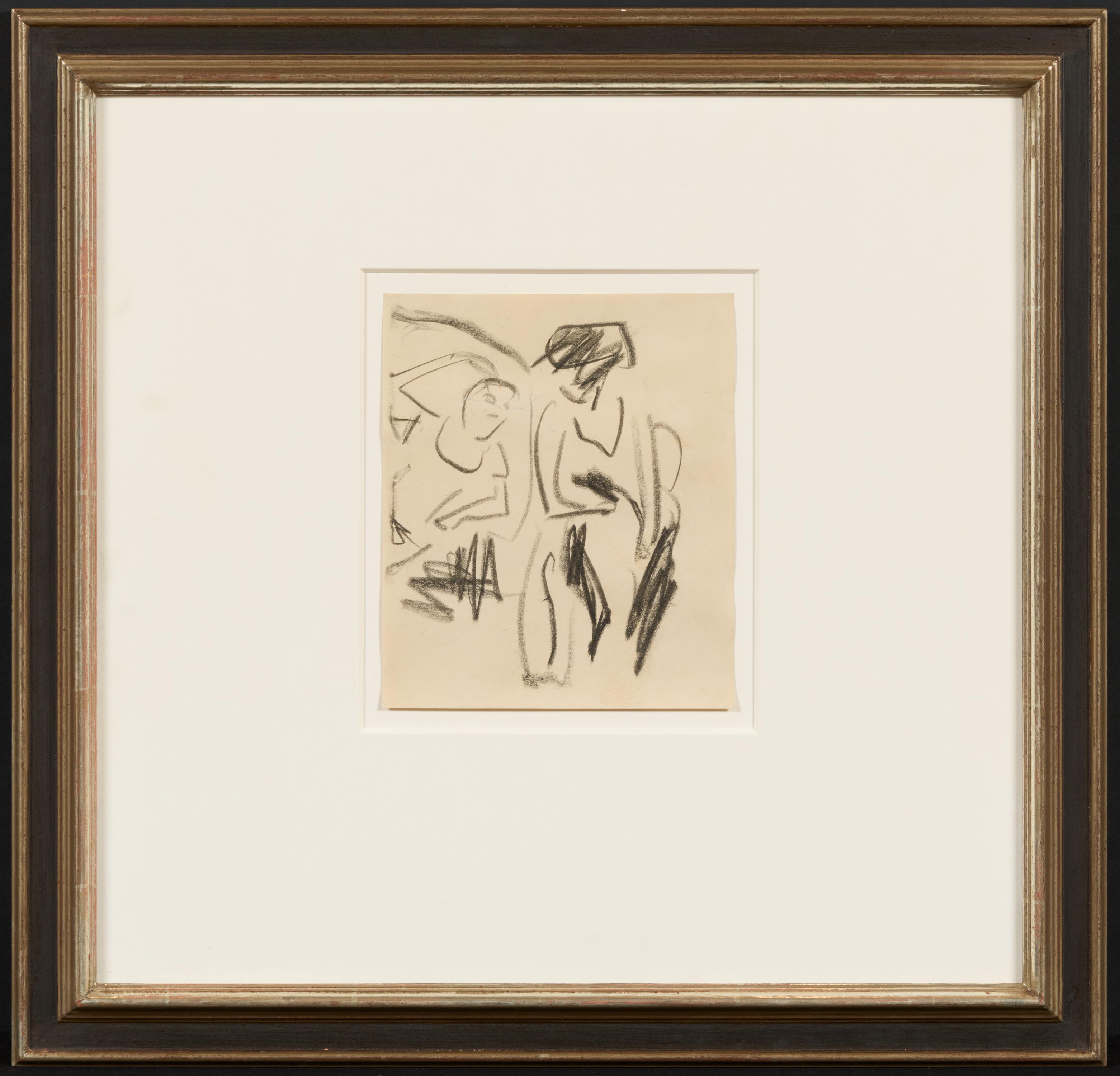 Exemplarische Zeichnung aus jenen Tagen, in denen Ernst Ludwig Kirchner sich gegen die akademische Tradition und ihr "Zeichnen nach der Natur" wandte. Er forderte "Arm- und Lebensfreiheit gegenüber den wohlangesessenen älteren Kräften." Hier reduziert er die Szene zweier Frauen im Atelier bis hin zu jenen graphischen Kürzeln und Zeichen, die eine neue, aus dem eigenen Inneren aufbrechende Hieroglyphenschrift begründen.