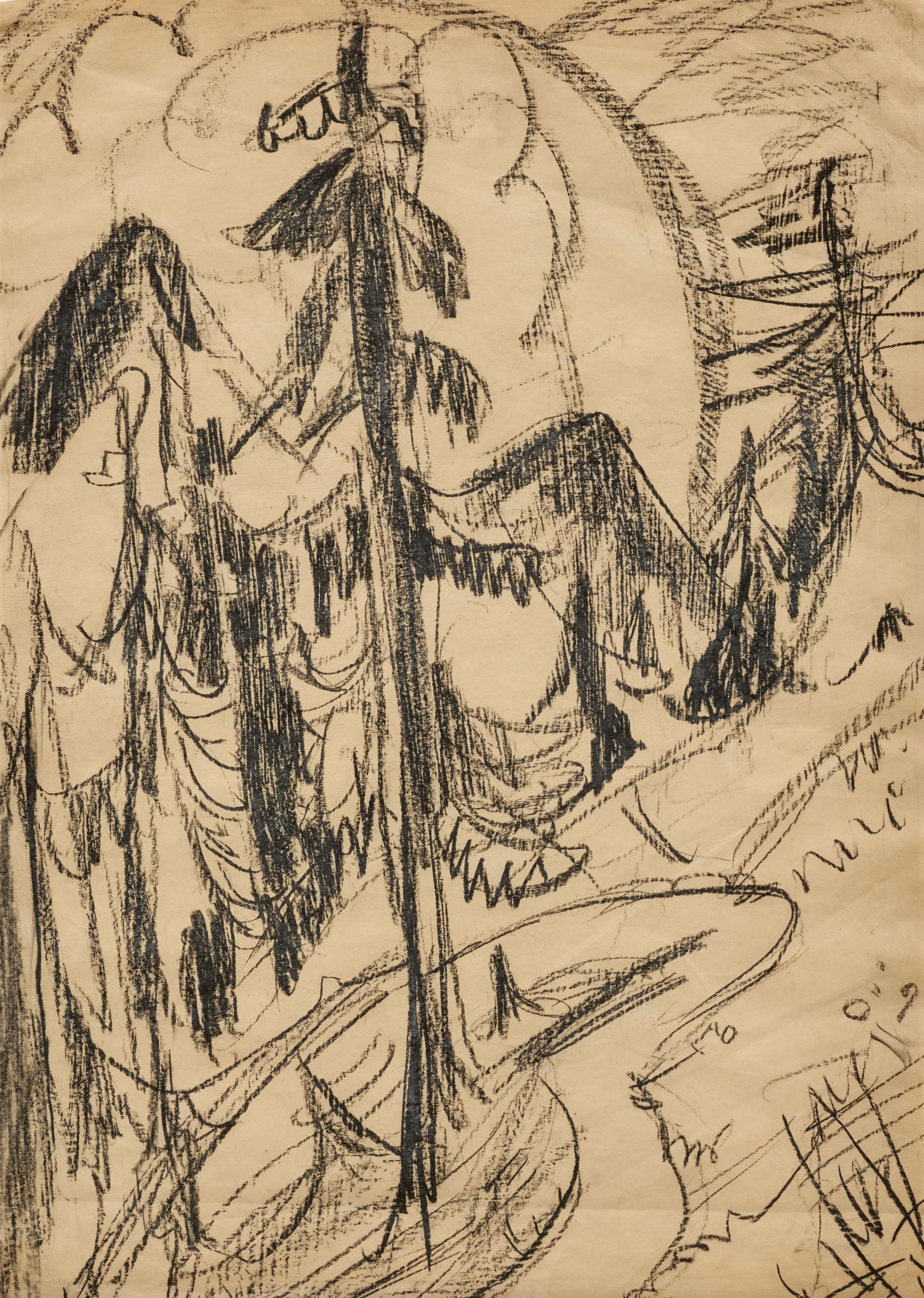 Technik: Kreide auf satiniertem chamoisfarbenem Papier.