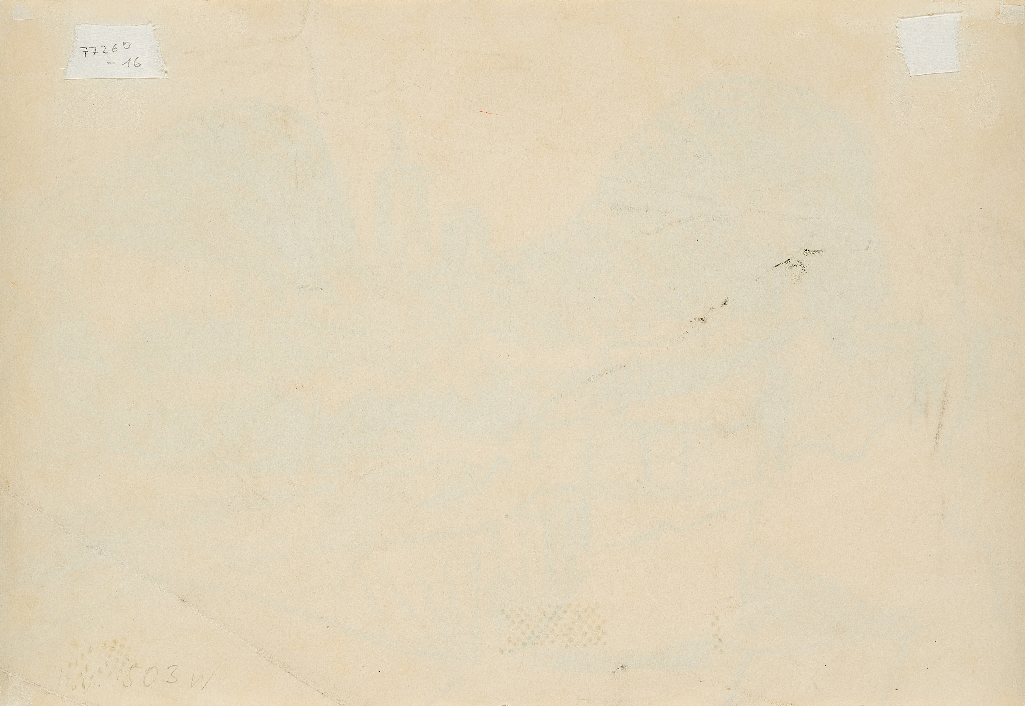 Minimal und unregelmäßig gebräunt. Leichte Knickspuren. Verso Reste alter Montierung sowie Arbeitsspuren und leichte Verschmutzungen. Ansonsten guter Zustand.