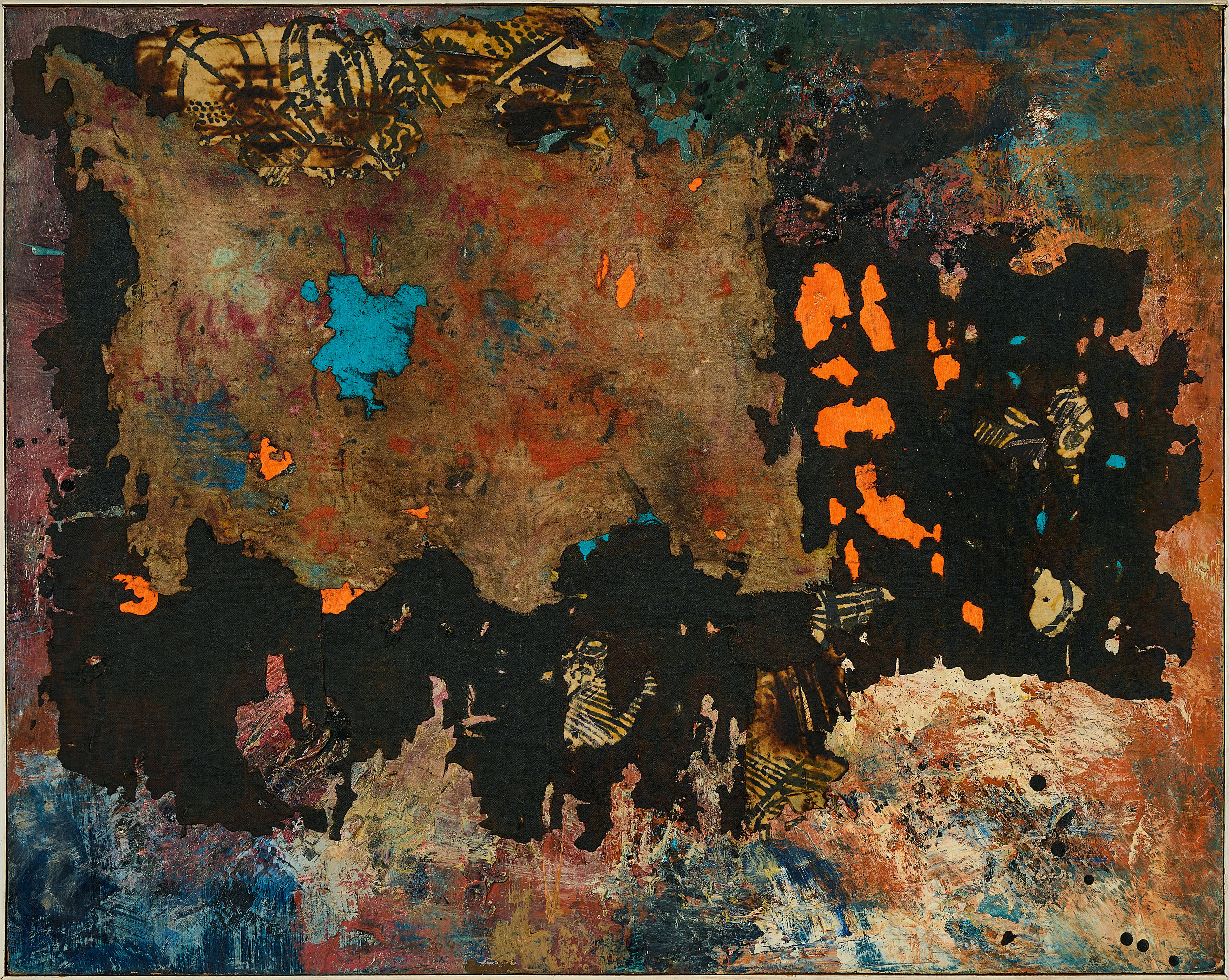 Technik: Mischtechnik, collagiert, auf Leinwand.