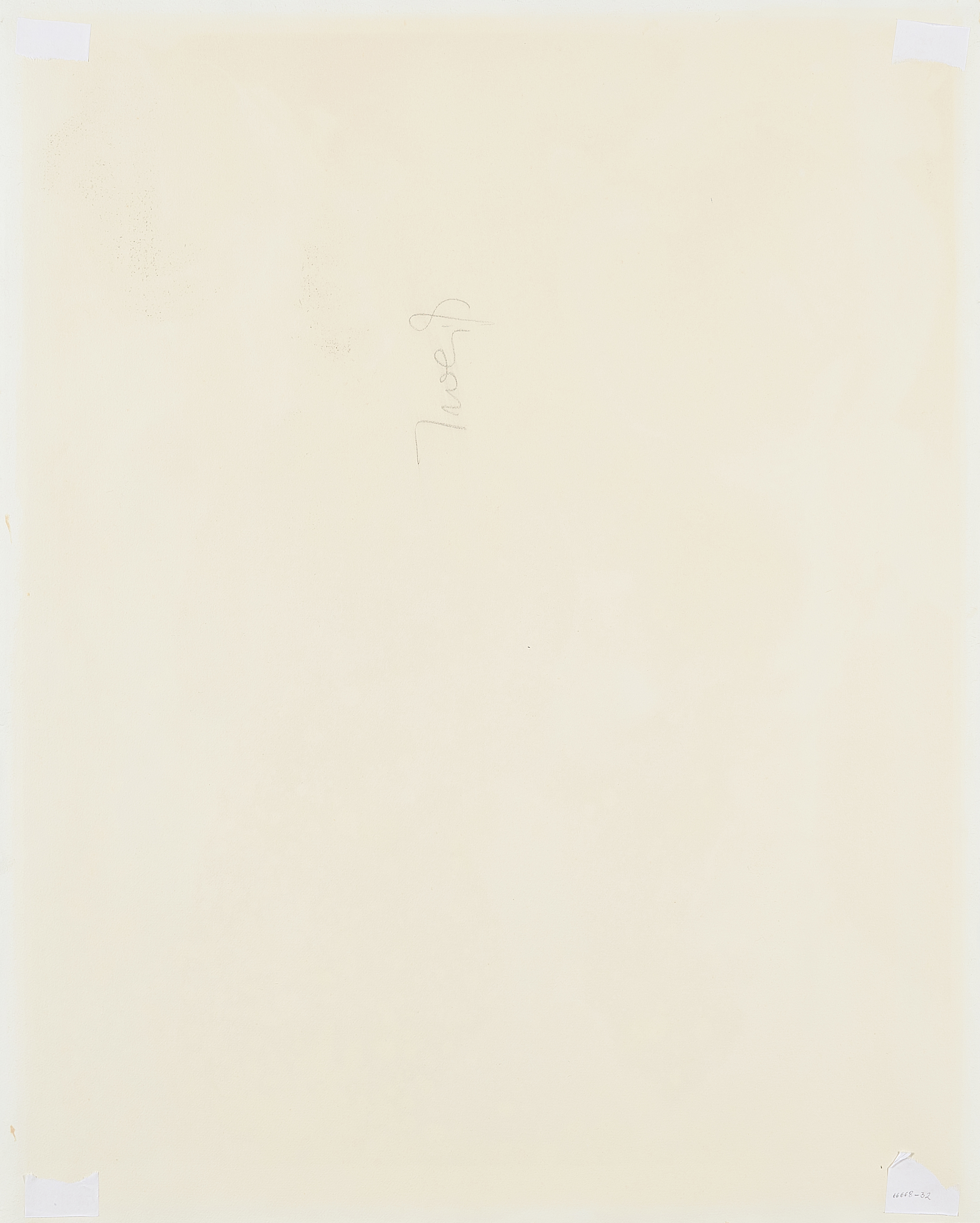 Blatt im ehemaligen Passepartoutausschnitt minimal gebräunt. Leicht beschnitten. Minimale Papierbereibungen entlang der Kanten bedingt durch ehemalige Montierung. Minimaler Papiereinriss (je ca. 0,5cm) jeweils an der linken Kante oben sowie an der rechten Kante unten. Verso Reste alter Montierung in den Ecken.