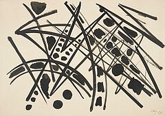 Rhythmen. 1954. Tuschpinselzeichnung auf Velin. 51 x 73cm. Signiert und datiert unten rechts: Nay 54. Verso bezeichnet von fremder Hand: E.W. NAY, NR 47 RYTHMEN, TUSCHPINSEL 1954, K. H. Gabler.