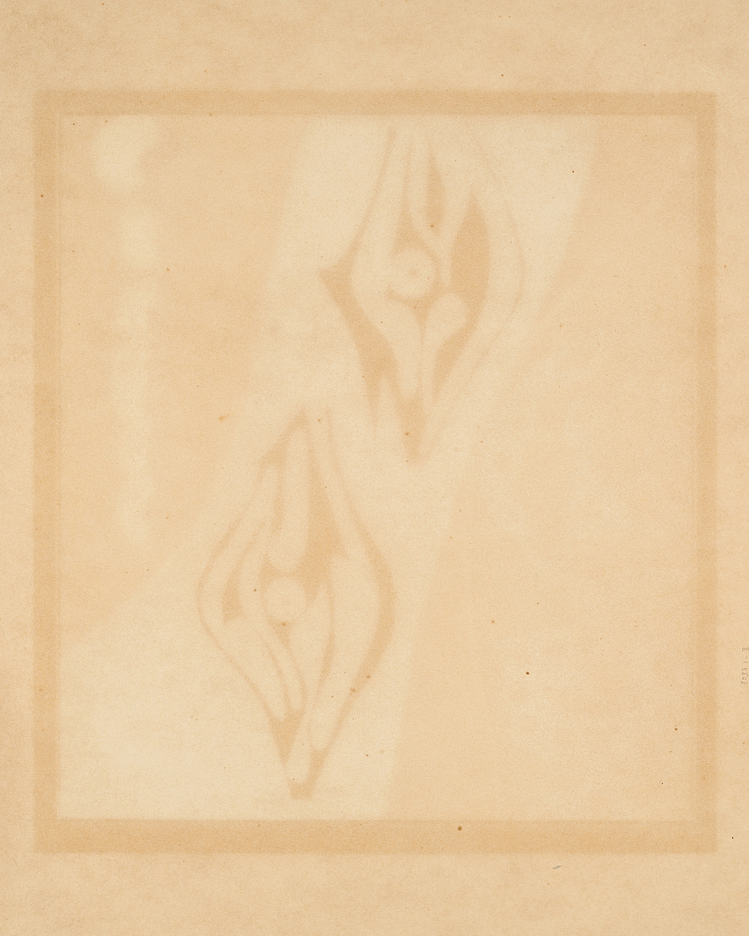 Blatt möglicherweise beschnitten. Leicht und unregelmäßig gebräunt. Vereinzelt minimale Bereibungen in der Darstellung. Minimale Stockflecken an den Rändern. Verso unregelmäßig gebräunt und leichte Stockflecken. Ansonsten guter Zustand.