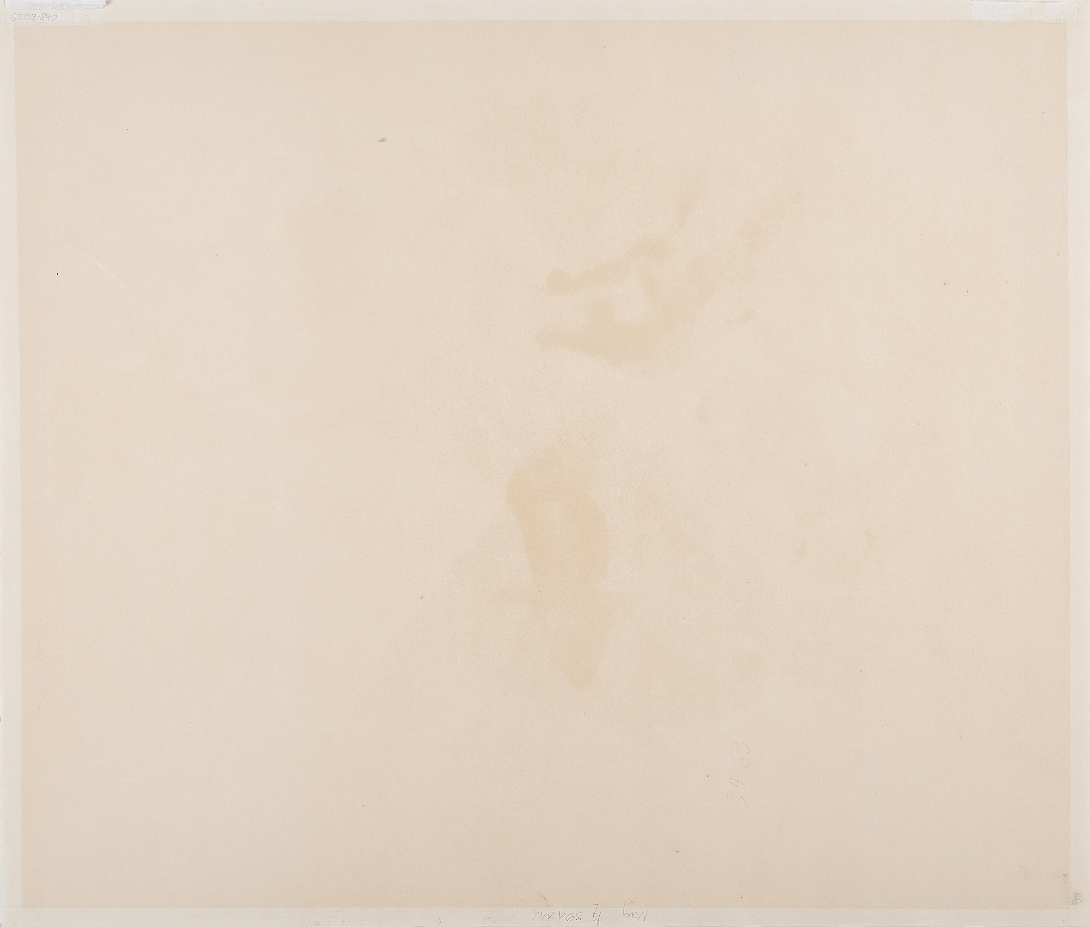 Obere und linke Kante möglicherweise minimal beschnitten (maximal 0,3cm). Blatt leicht gebräunt. Vereinzelt minimale Stockflecken. Verso Reste alter Montierung sowie leicht gebräunt. Ansonsten guter Zustand.