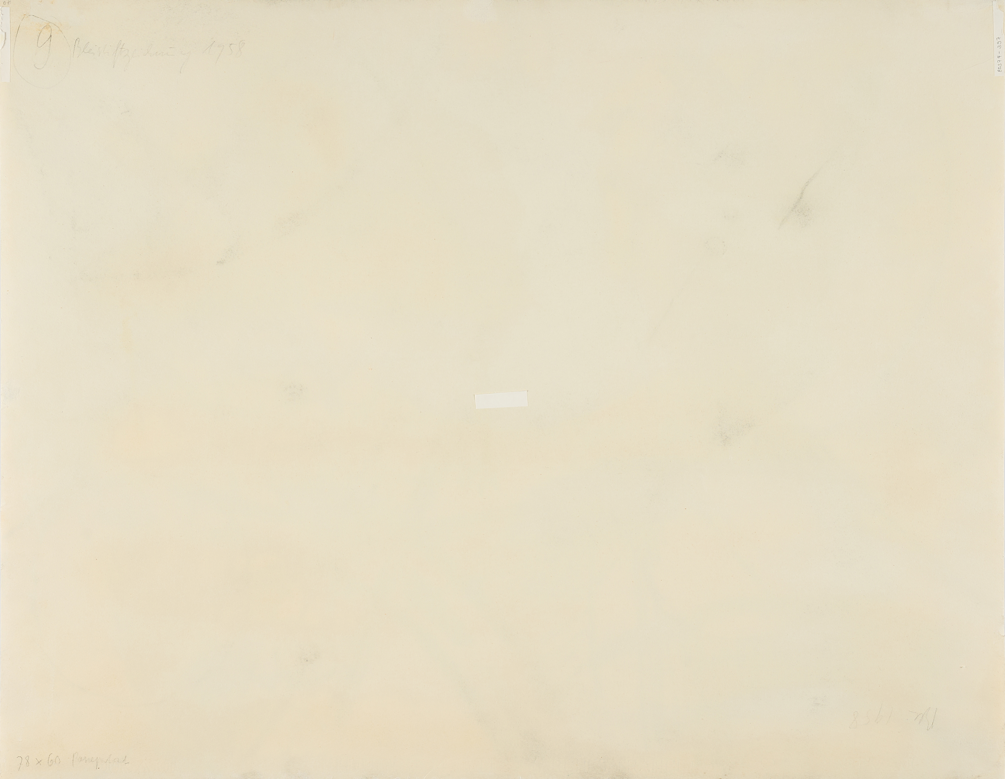 Oberer Rand links mit kurzer Knickspur. Verso Spuren und Reste alter Montierung. Bleistiftbeschriftung. Schwarze Aufriebe und Fingerabdrücke. Ansonsten sehr guter Zustand.