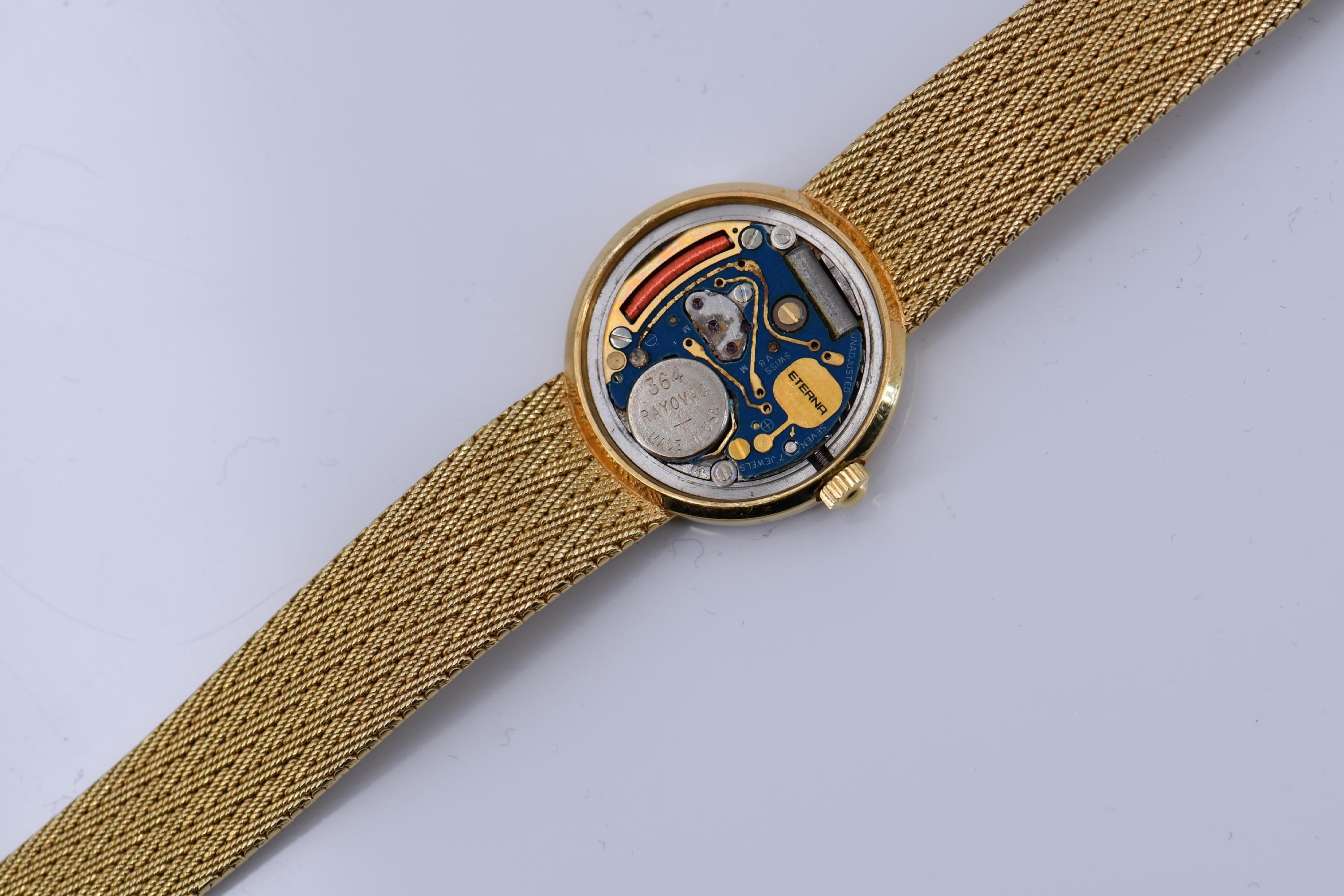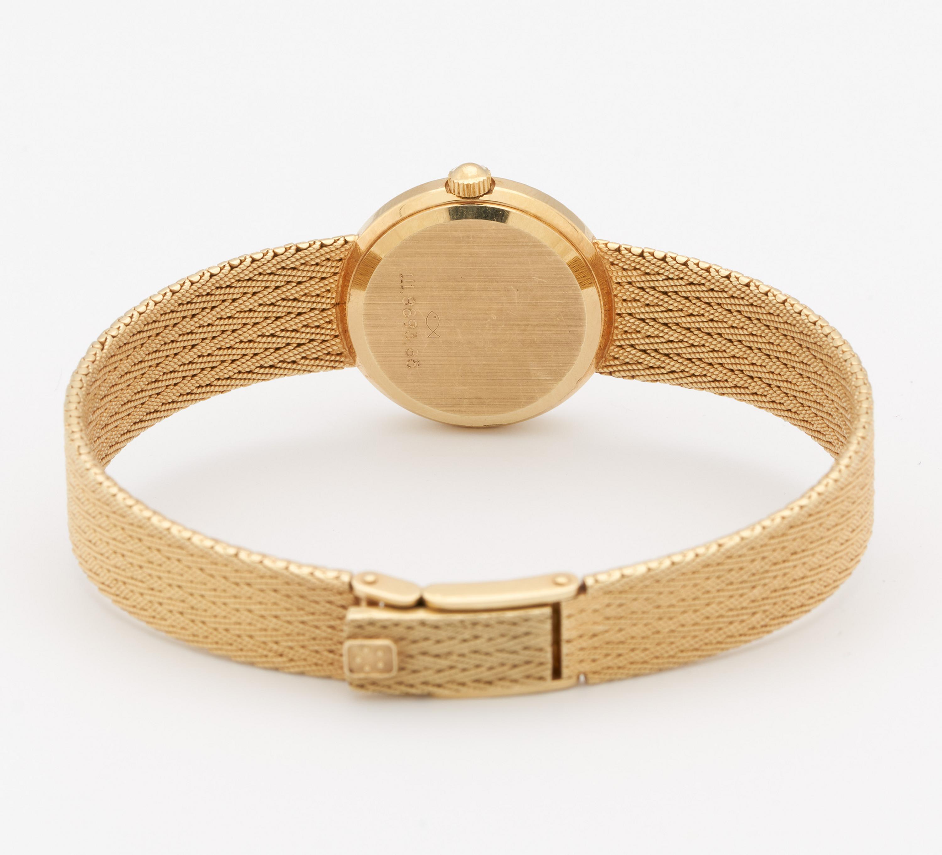 Gehäuse/Armband: 585/- Gelbgold, Zffbl. und Zeiger golden, aufgesetzte Indizes.