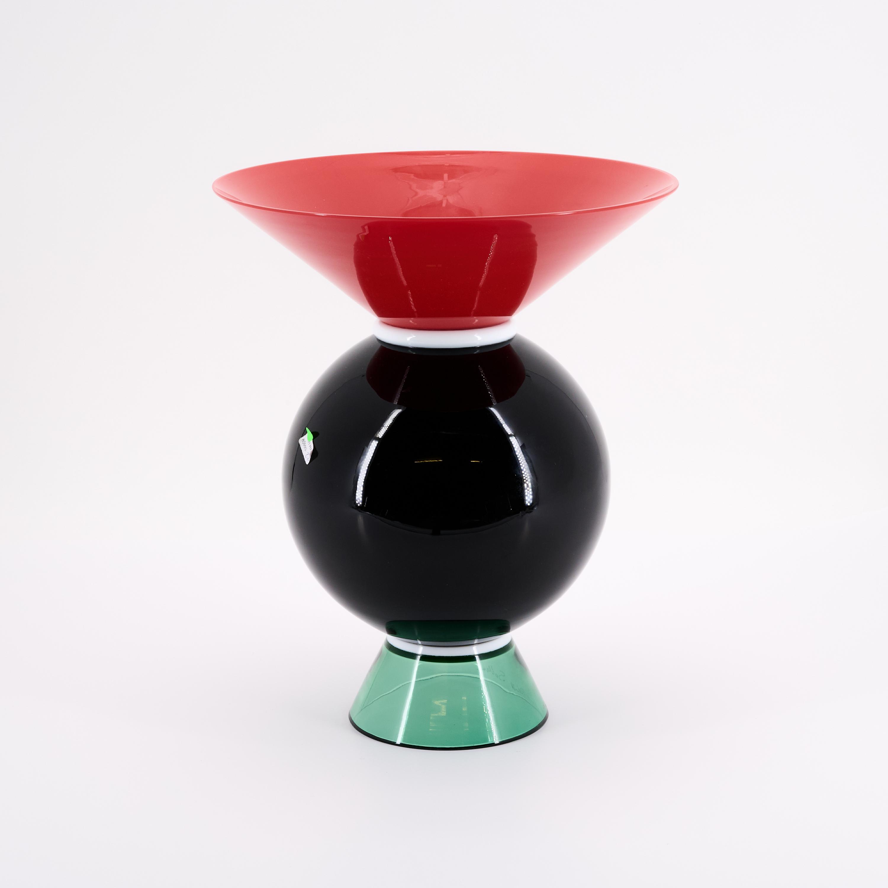 Marke: Am Fuß bez. 'Venini 99 Ettore Sottsass' (graviert). Runder Herstelleraufkleber.