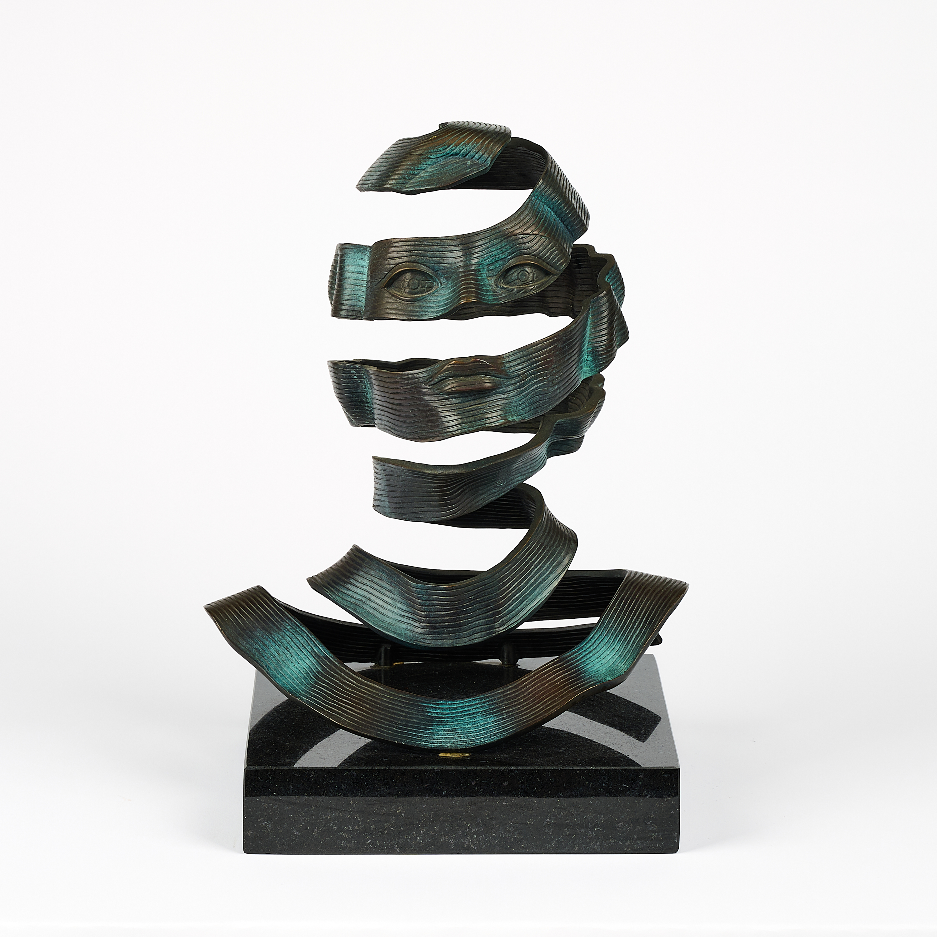 Technik: Bronze, braun und teilweise grün patiniert, teilweise poliert. Auf Granitsockel.
