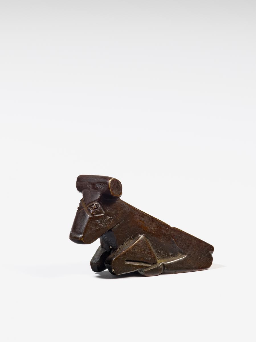 Kniendes Kälbchen. 1959. Bronze. , braun patiniert. 4 x 6 x 3cm.
