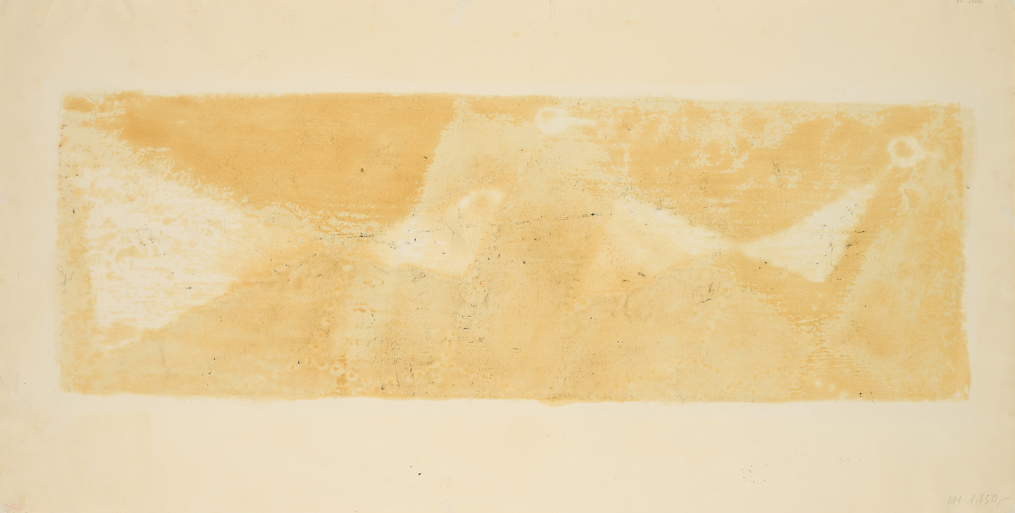 Minimal gebräunt. Leichte Griffspuren. Leichte Knickspur in der unteren rechten Ecke. Vereinzelt minimale Verschmutzungen. Arbeitsspuren. Verso Reste alter Montierung sowie leicht gebräunt, durchschlagende Druckfarbe und minimale Verschmutzungen. Ansonsten guter Zustand.