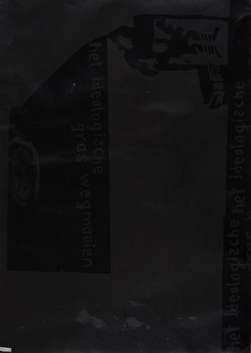 Verso befindet sich die Druckgraphik "het ideologische gras wegmaaien", 1987, Holzschnitt
