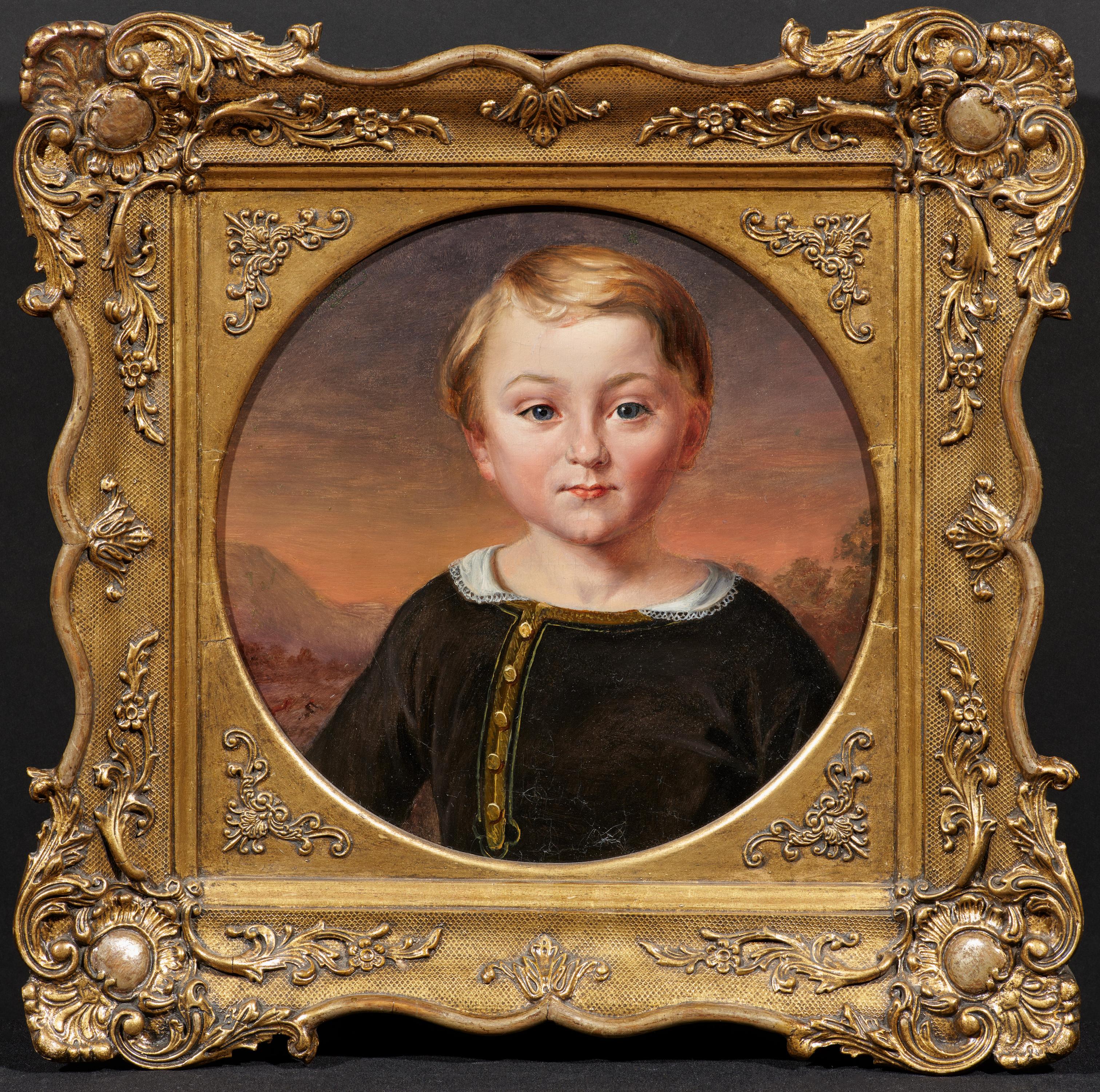 Als Malträger diente bei diesem Kinderporträt mit dem skizzenhaften Reiter links - wie bei von Rayski nicht unüblich - wohl der Deckel eines Austernfässchens.