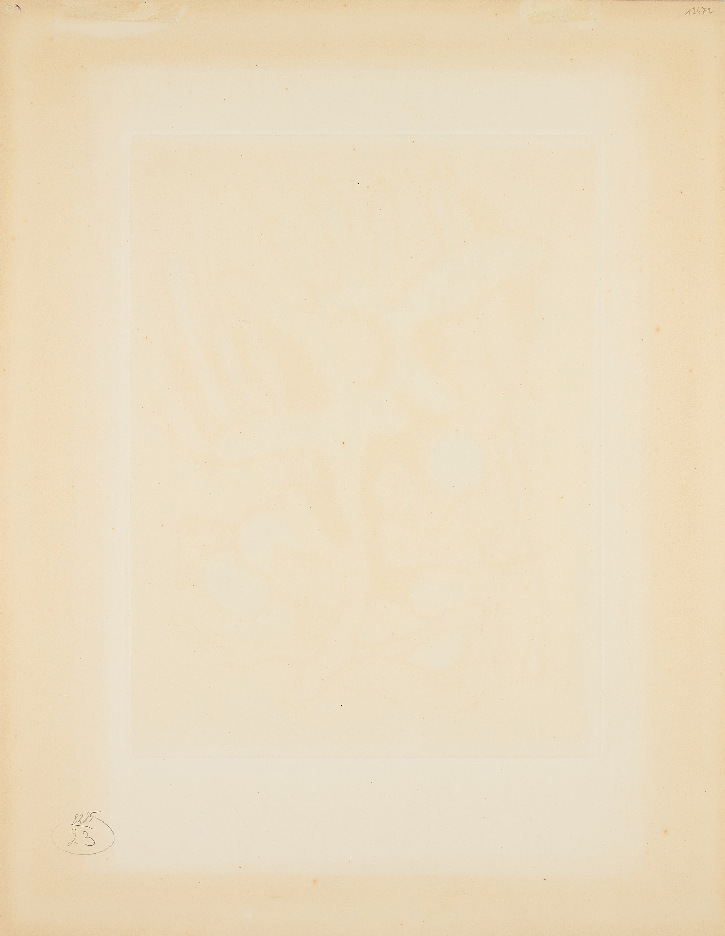 Minimal und unregelmäßig, an den Kanten leicht gebräunt. Vereinzelt minimale Griffspuren und minimale Stockflecken. Verso leicht und unregelmäßig gebräunt sowie minimale Stockflecken und Spuren alter Montierung. Ansonsten guter Zustand.