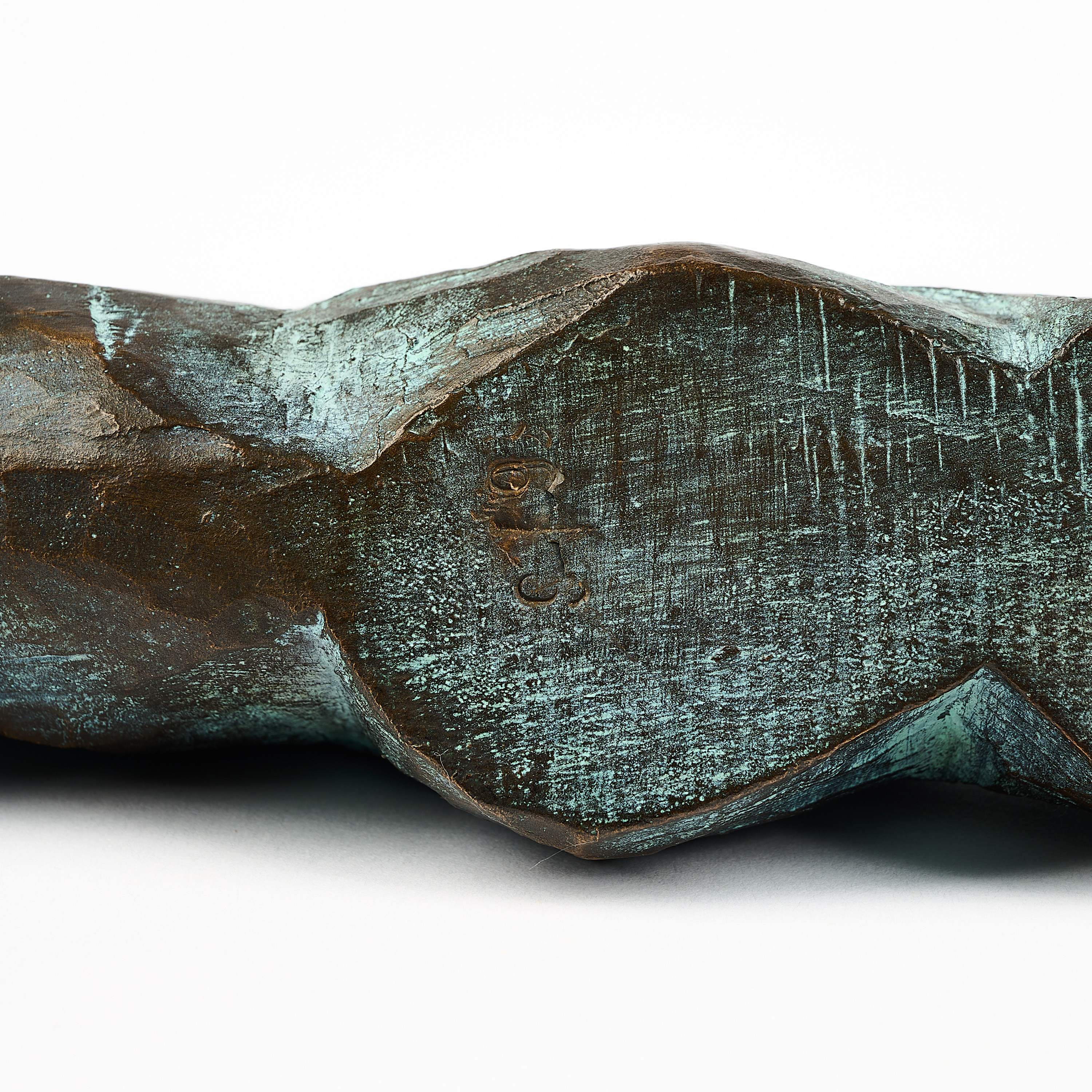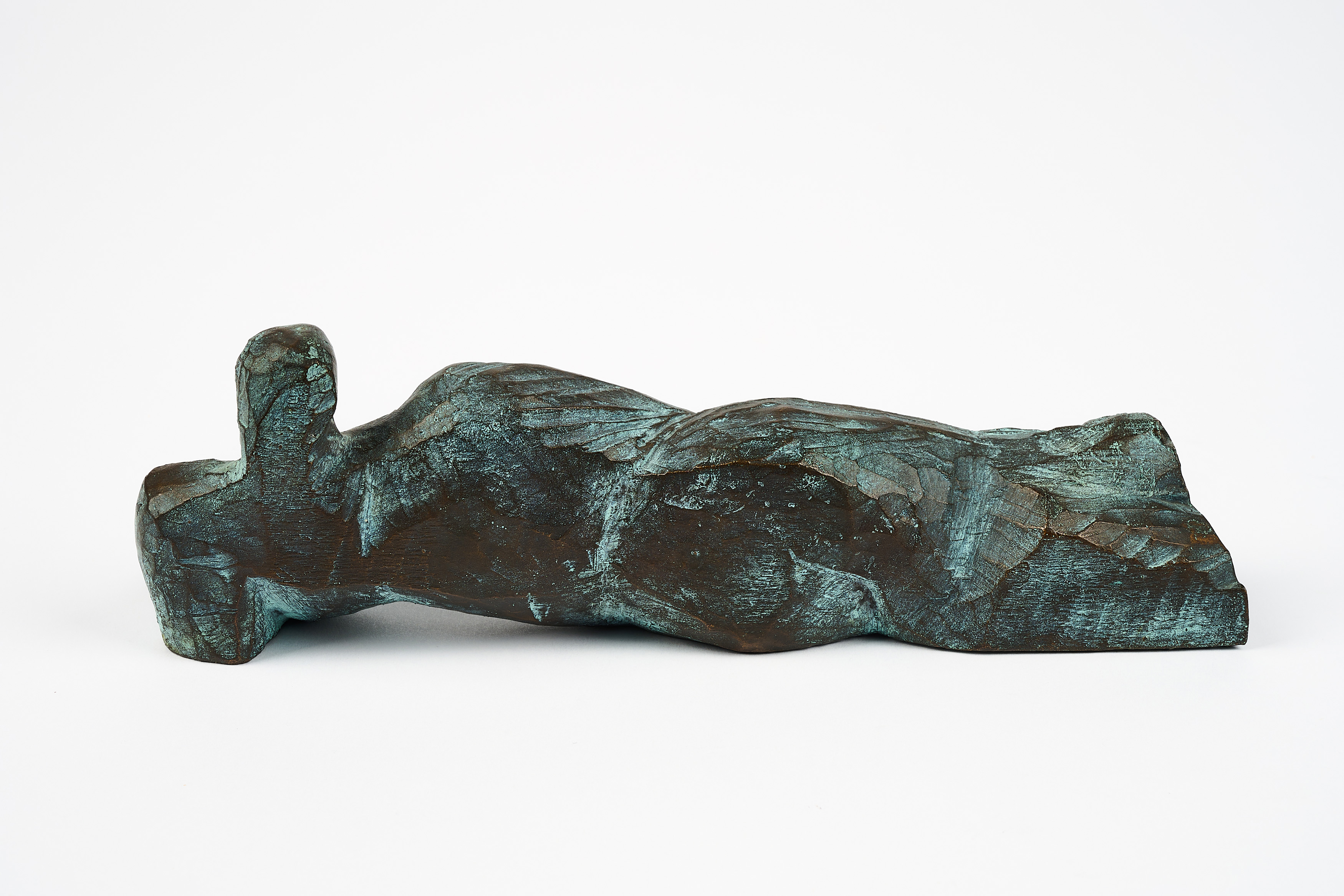 Technik: Bronze, braun und teilweise türkis patiniert.