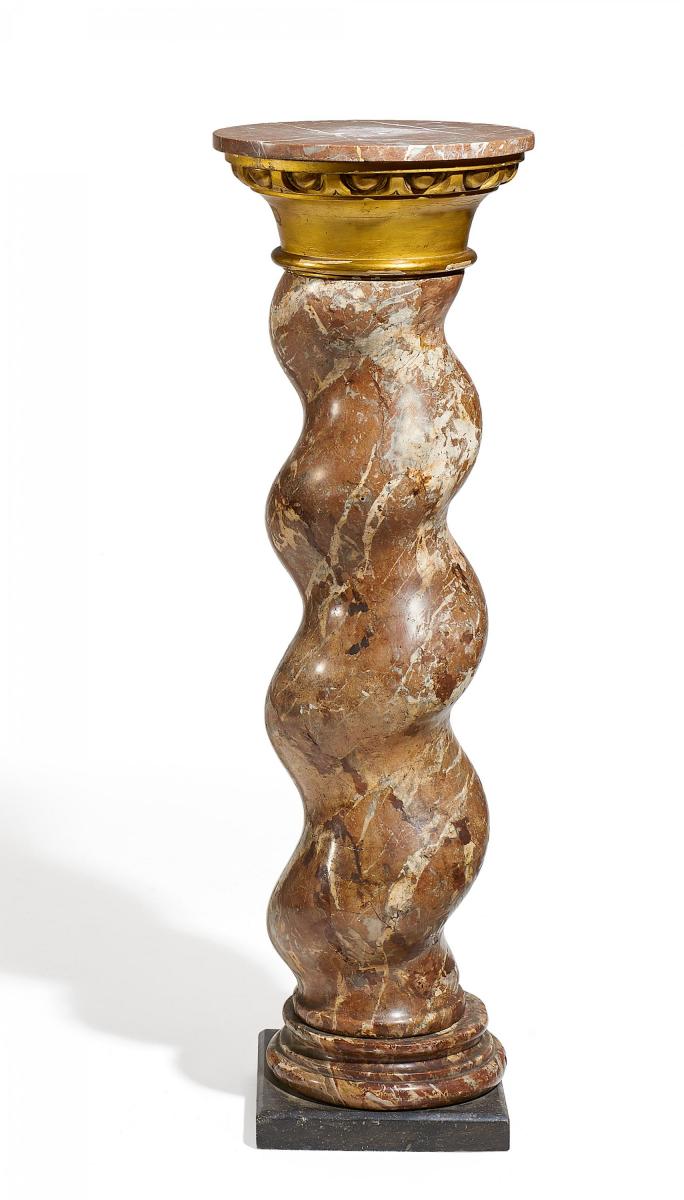 Roter Marmor. Höhe insgesamt 116 cm. Zustand B. Plinthe und vergoldetes Holzkapitell ergänzt.
