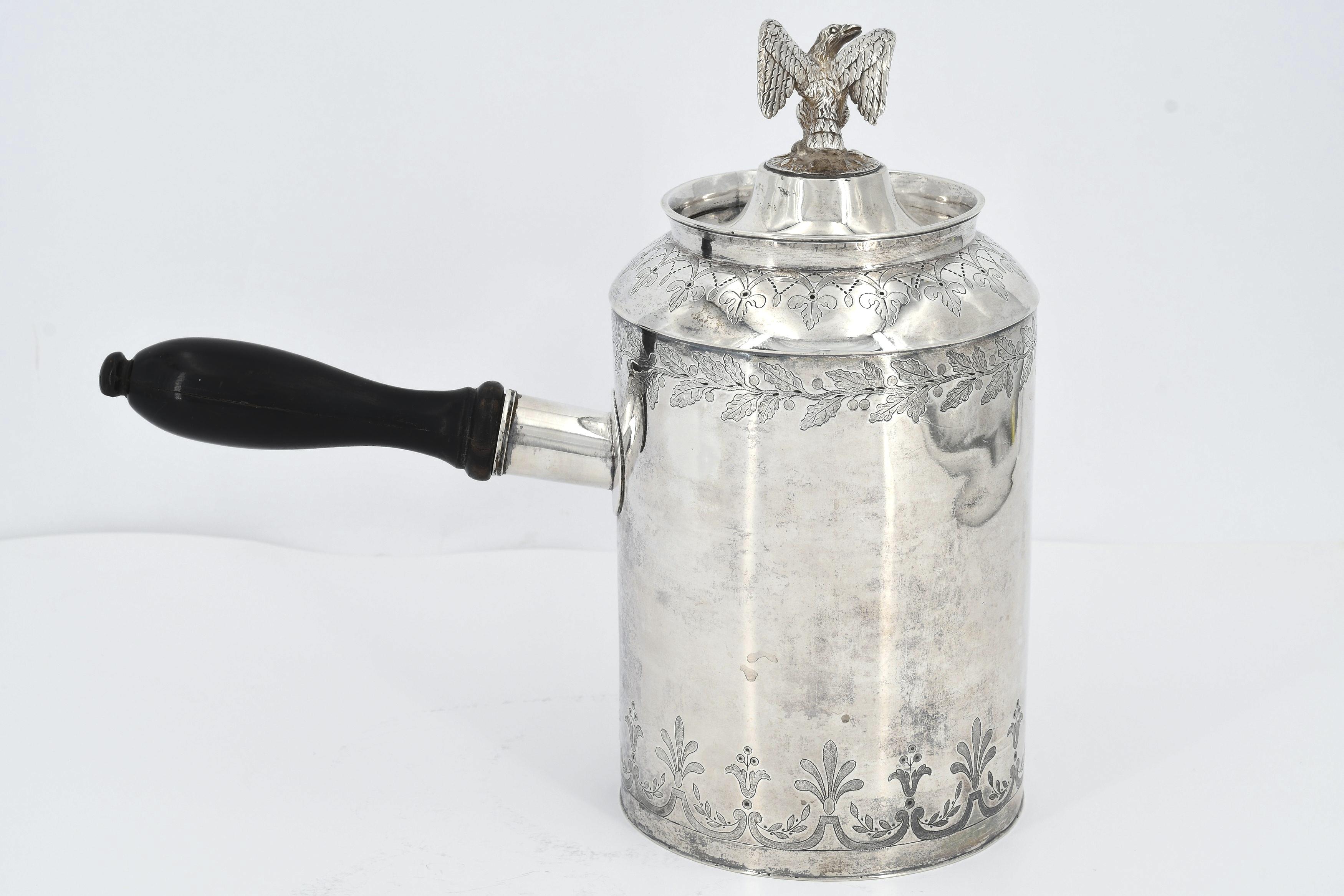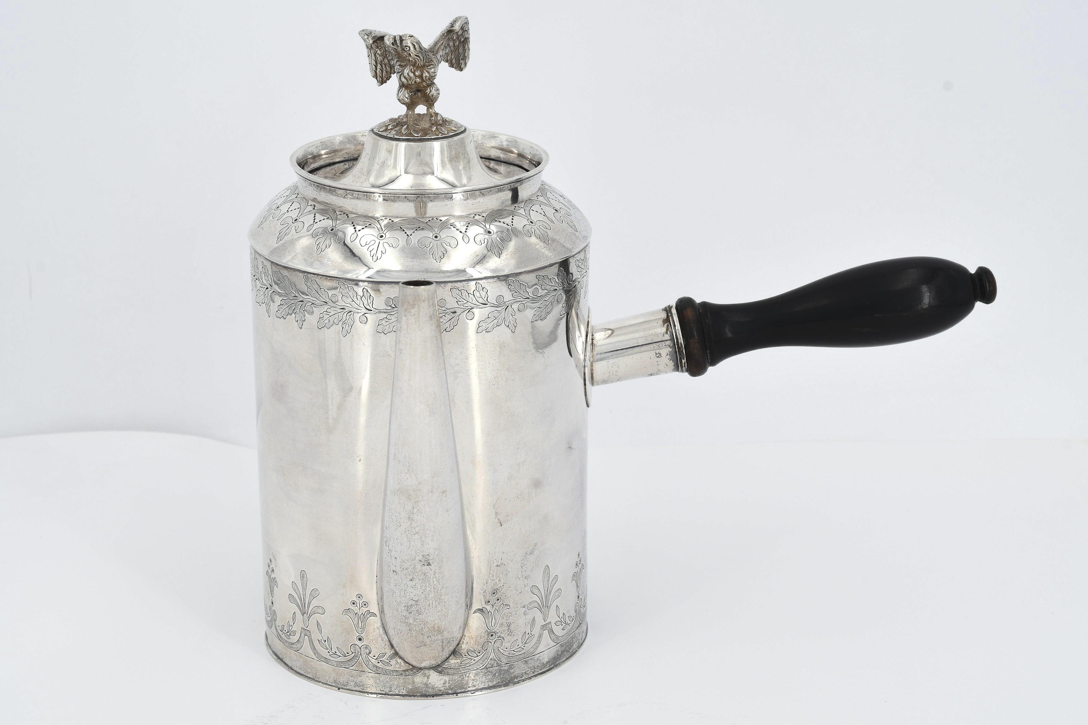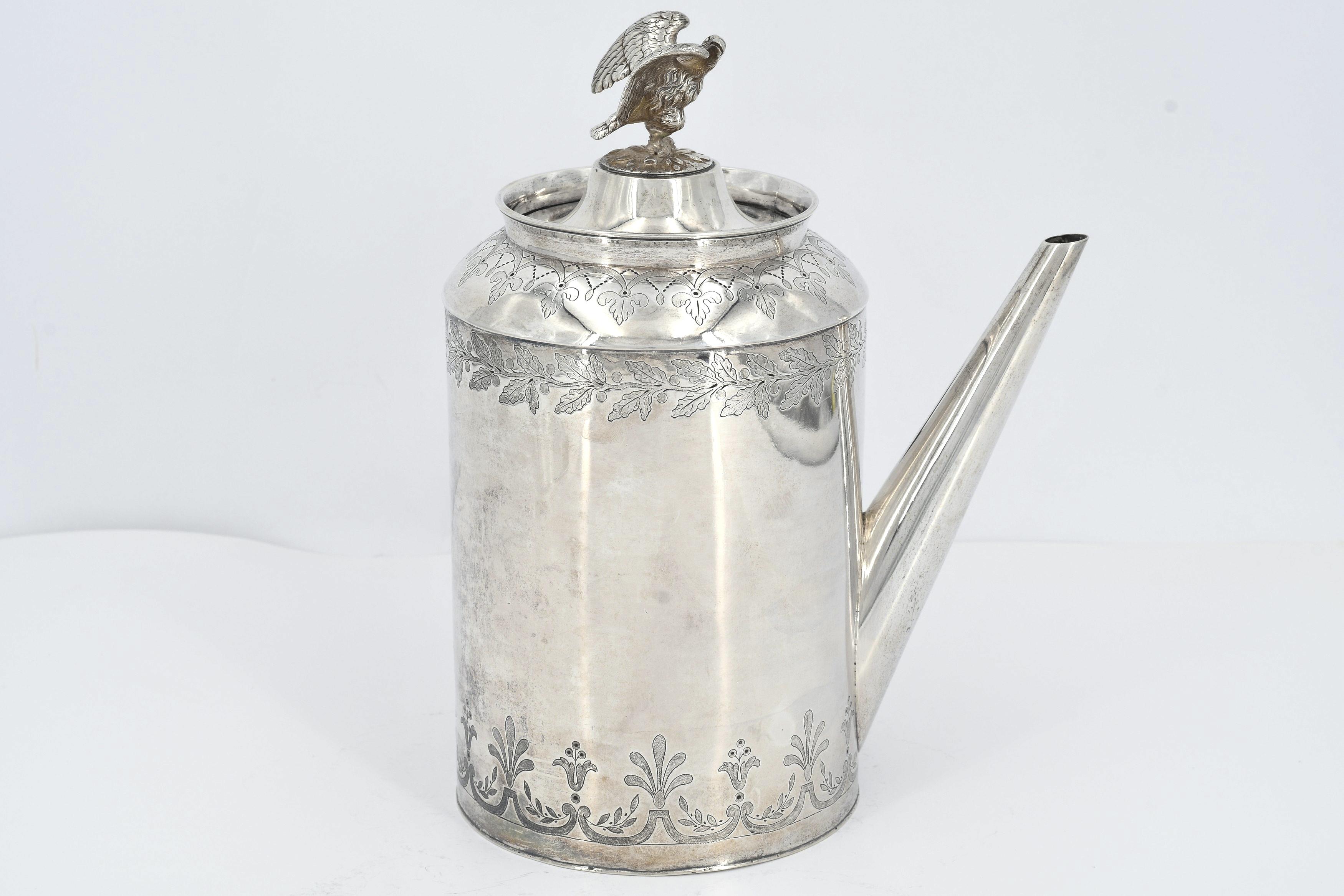 GROßE KAFFEEKANNE MIT ADLERZIER UND SEITLICHEM GRIFF.