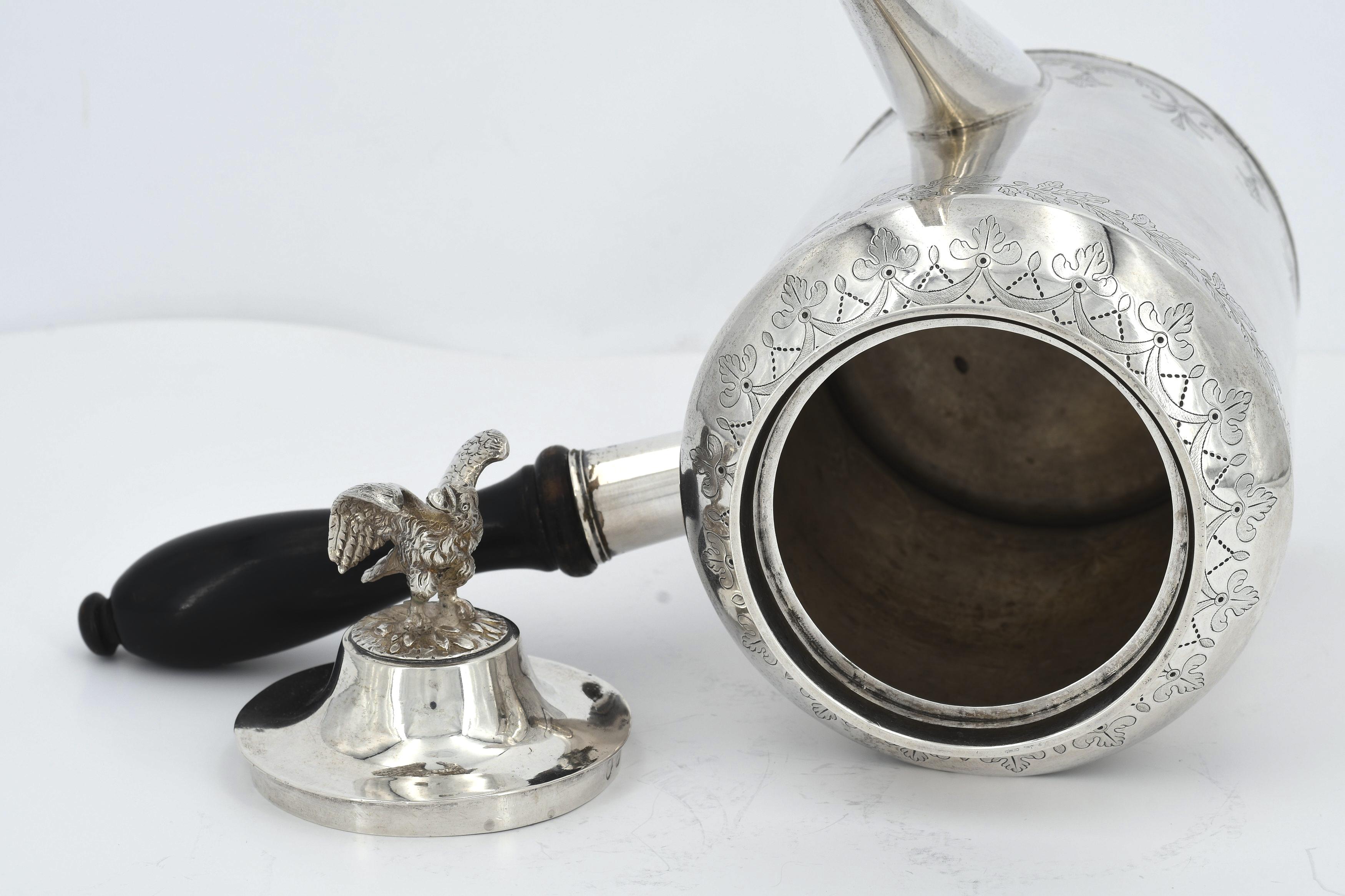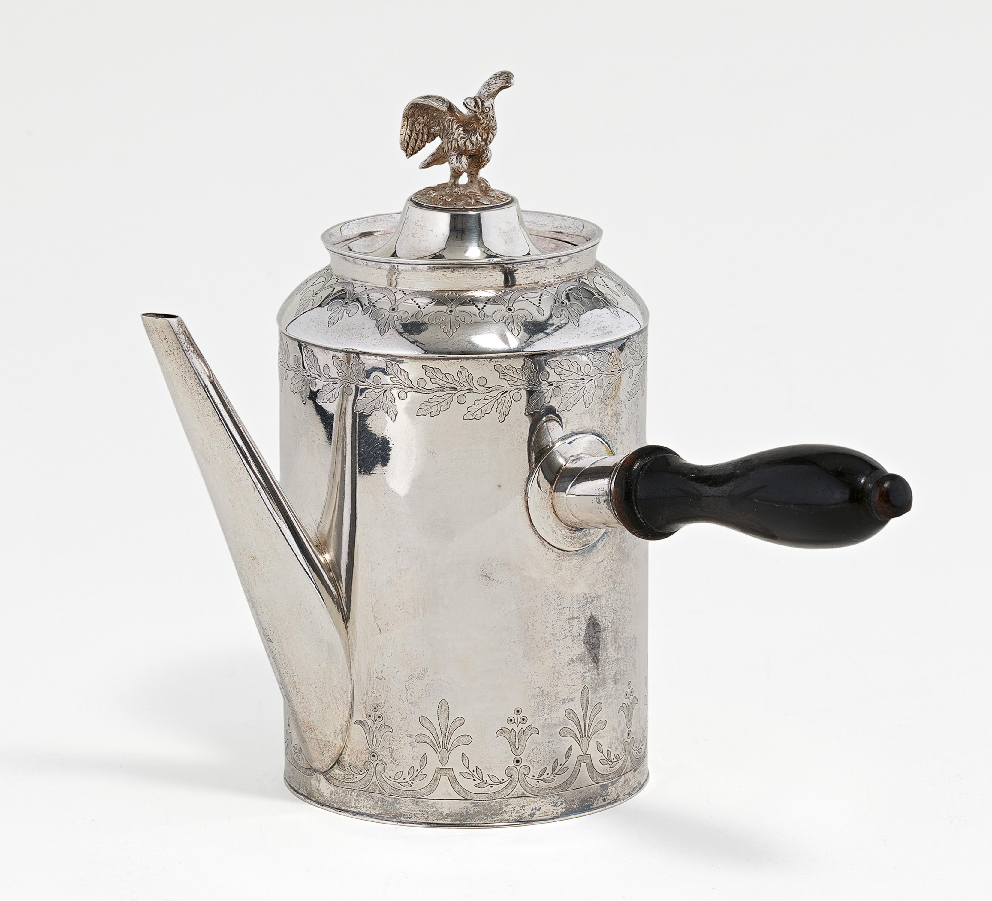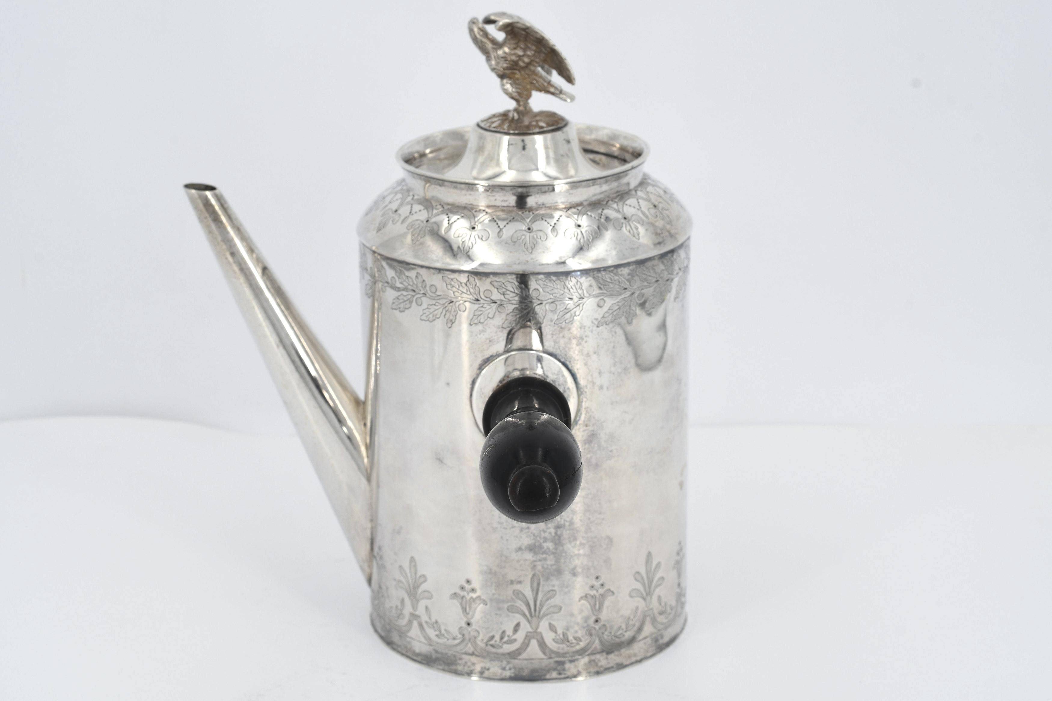 GROßE KAFFEEKANNE MIT ADLERZIER UND SEITLICHEM GRIFF.