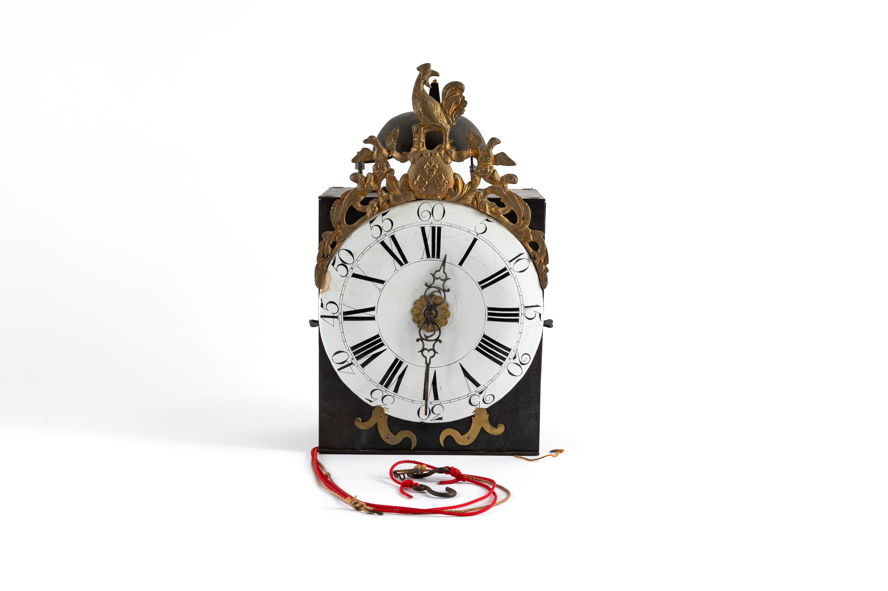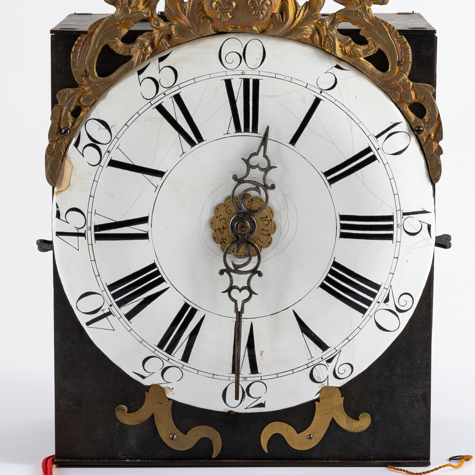 Beschreibung: Großes Emailzifferblatt mit römischen Stunden und arabischer Minuterie. Monatsläufer.