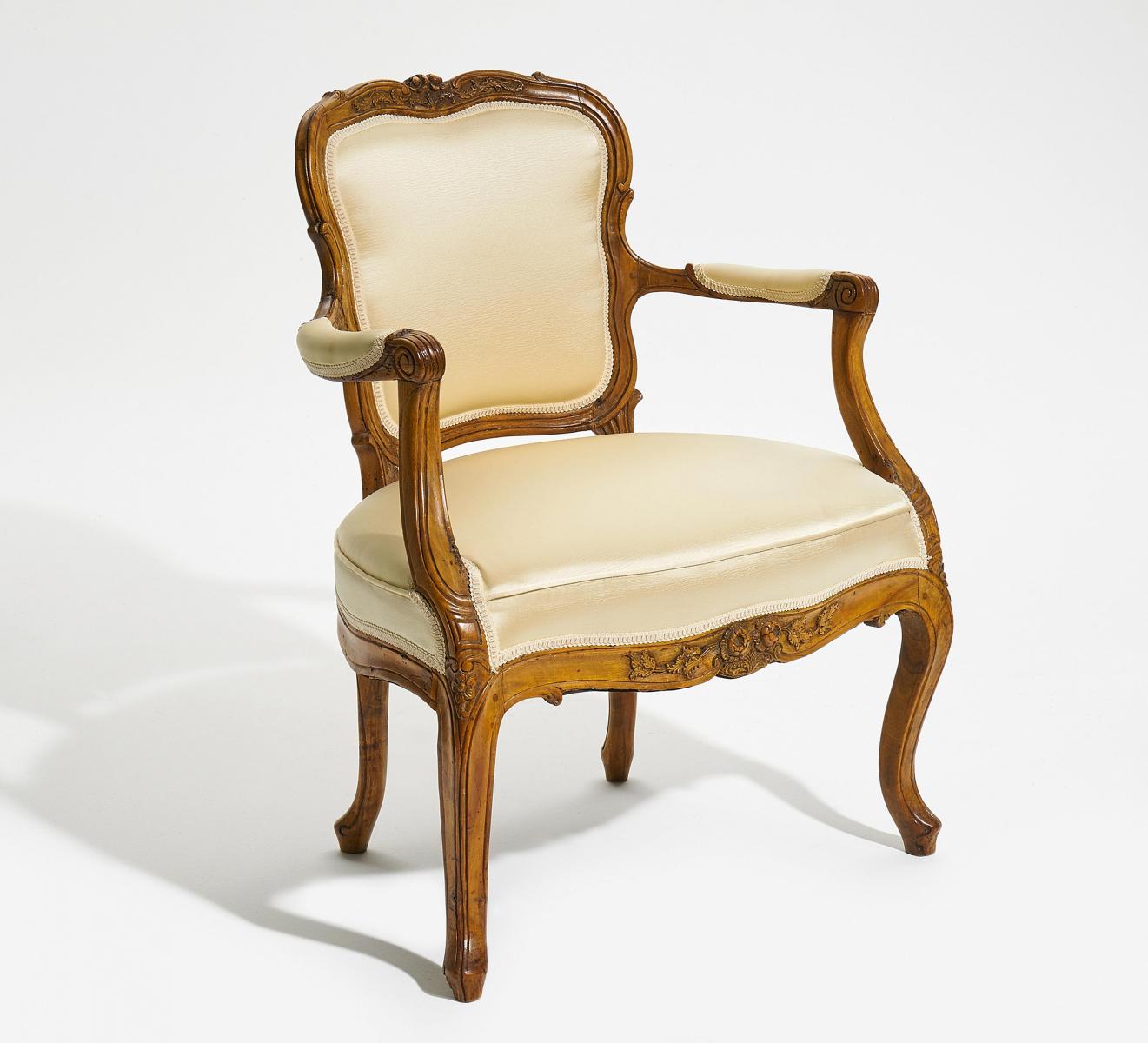 Technik: Nussbaum geschnitzt. Gepolstert.