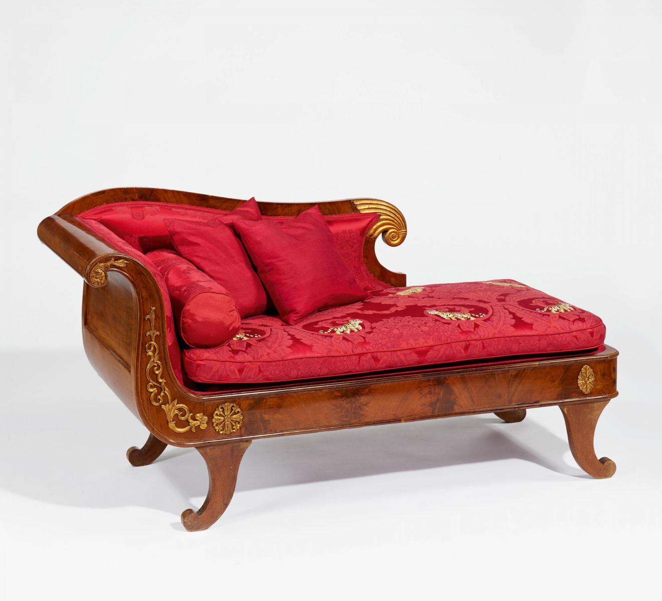 Technik: Mahagoni, tlw. geschnitzte Applikationen. Gepolstert.